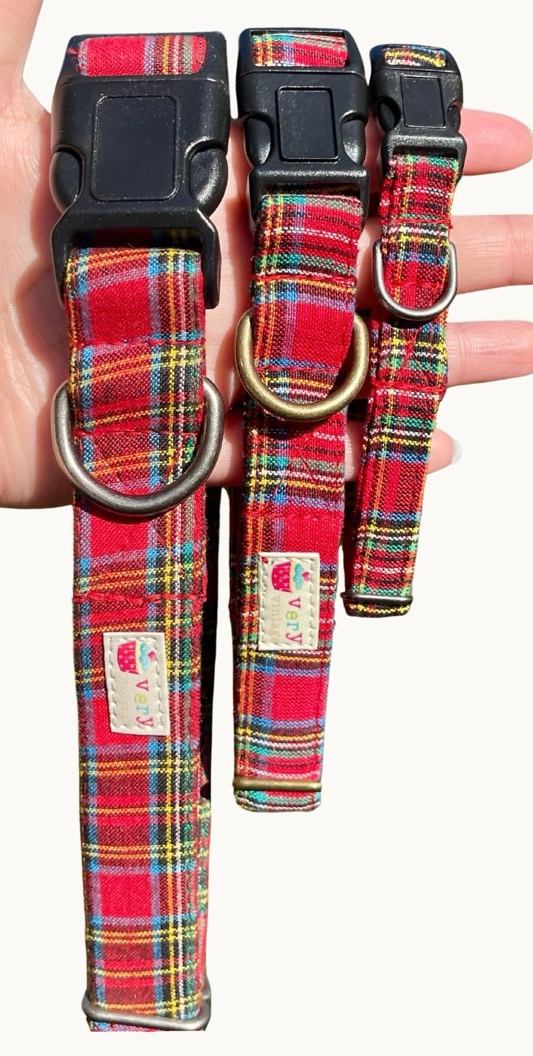 Celebrate the season in timeless style with our Scotsman dog collar! ❤️🎄 Featuring a rich red tartan plaid with festive hints of green, gold, and navy, this classic holiday pattern is perfect for pups who love tradition with a twist. Handmade from premium cotton layered over eco-friendly organic cotton webbing, it’s equal parts durable, comfortable, and full of vintage charm.