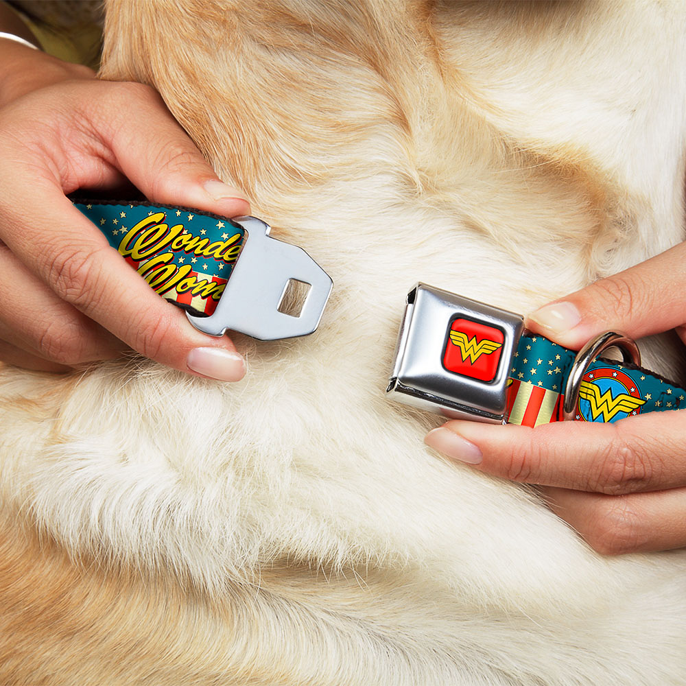Wonder Woman Red Seatbelt Buckle Collar - WONDER WOMAN/Logo Americana Red/White/Blue/Yellow