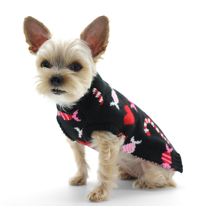 Black sweater with red and white candy graphics makes this sweater fun and festive for the holiday season