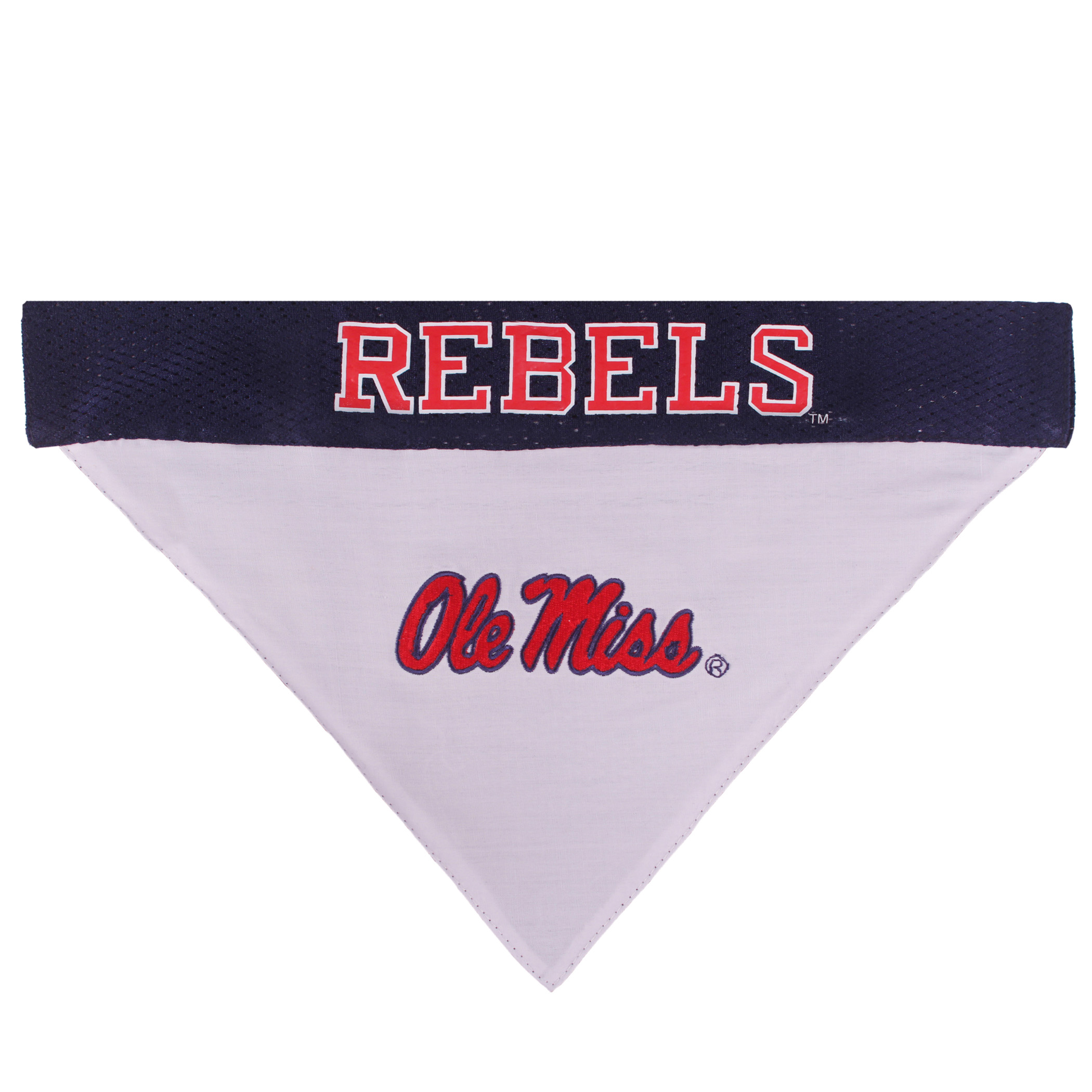 Reversible - 2 sided pet bandana, 1 side is a mesh bandana with screen-printed logo & 1 side is poly-cotton with a premium embroidered team logo! Made of a durable mesh & poly-cotton fabric making it the ideal bandanas for dogs. Available in 1 sizes: small/medium bandana: 9.5" x 6.5". Comfortable 100% poly-cotton keeps it wrinkle free and easy to clean.