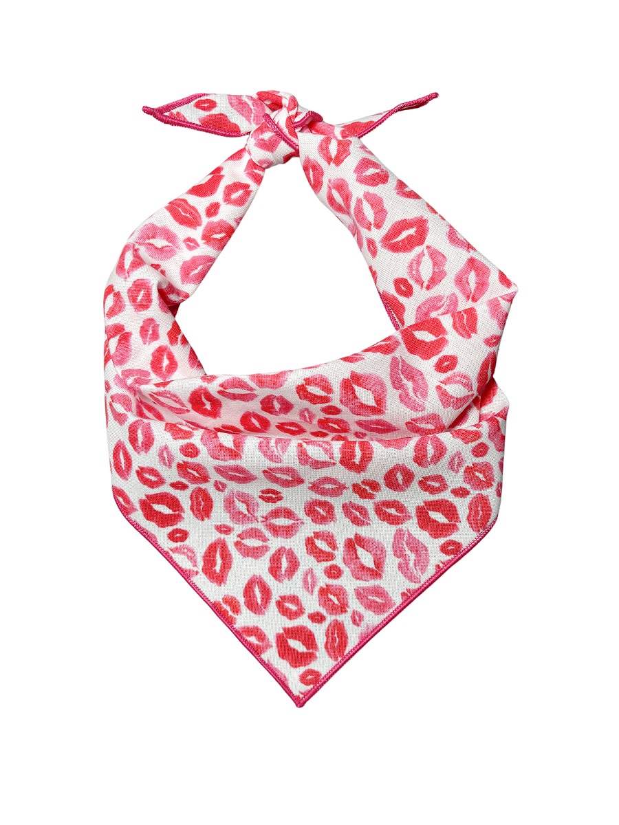 Crisp Cotton with Pink & Red Lip Kisses with Hot Pink Rolled Hem - Totally Adorable!