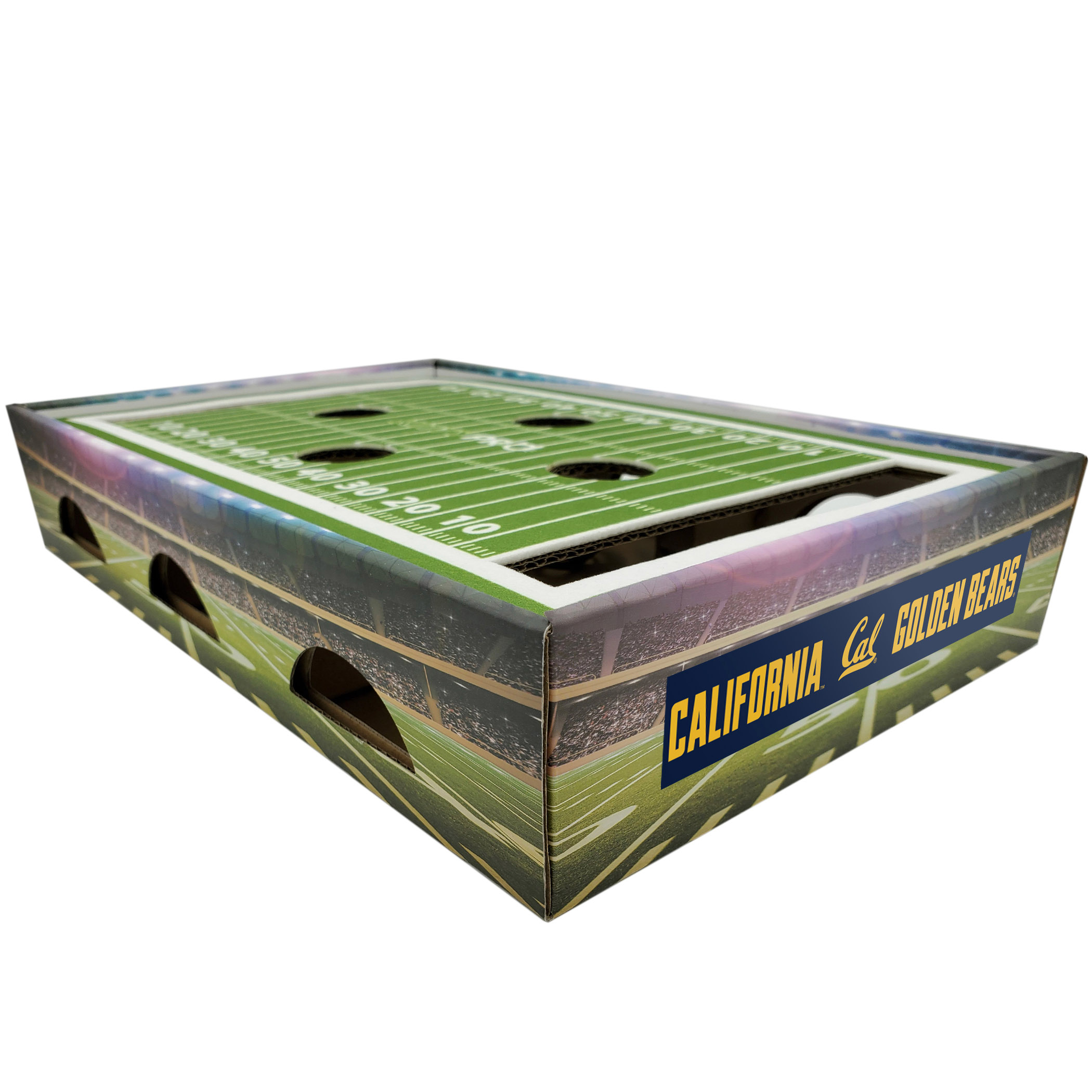 Features team graphics on both sides of the football field and jingling ball that rolls around entire track.