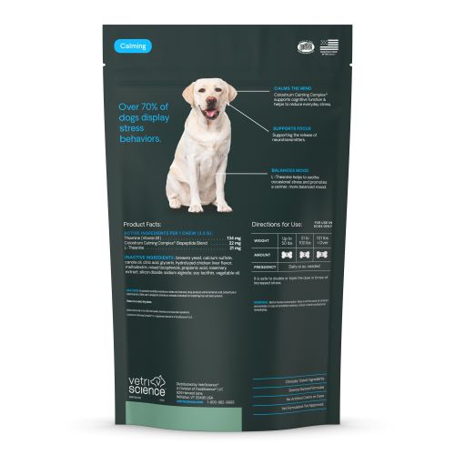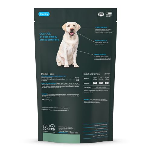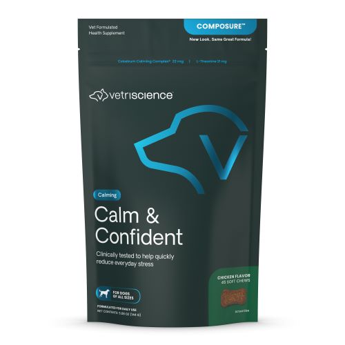 Calm & Confident Chews for Dogs supports calming behavior for up to hours. With clinically tested ingredients, VetriScience' veterinarian-led formulas support quick-acting calming behavior and can work in as fast as 30 minutes!