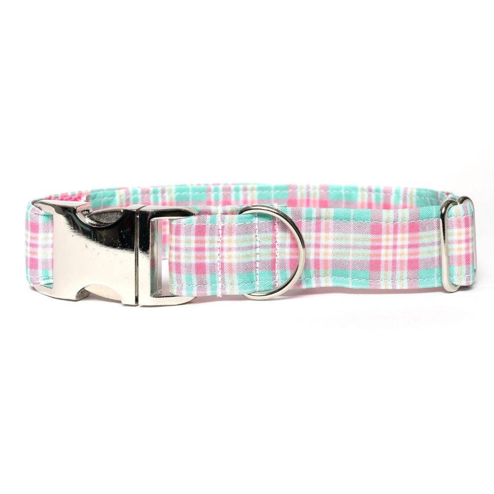 MINT GREEN AND PINK PLAID - DOG COLLAR
