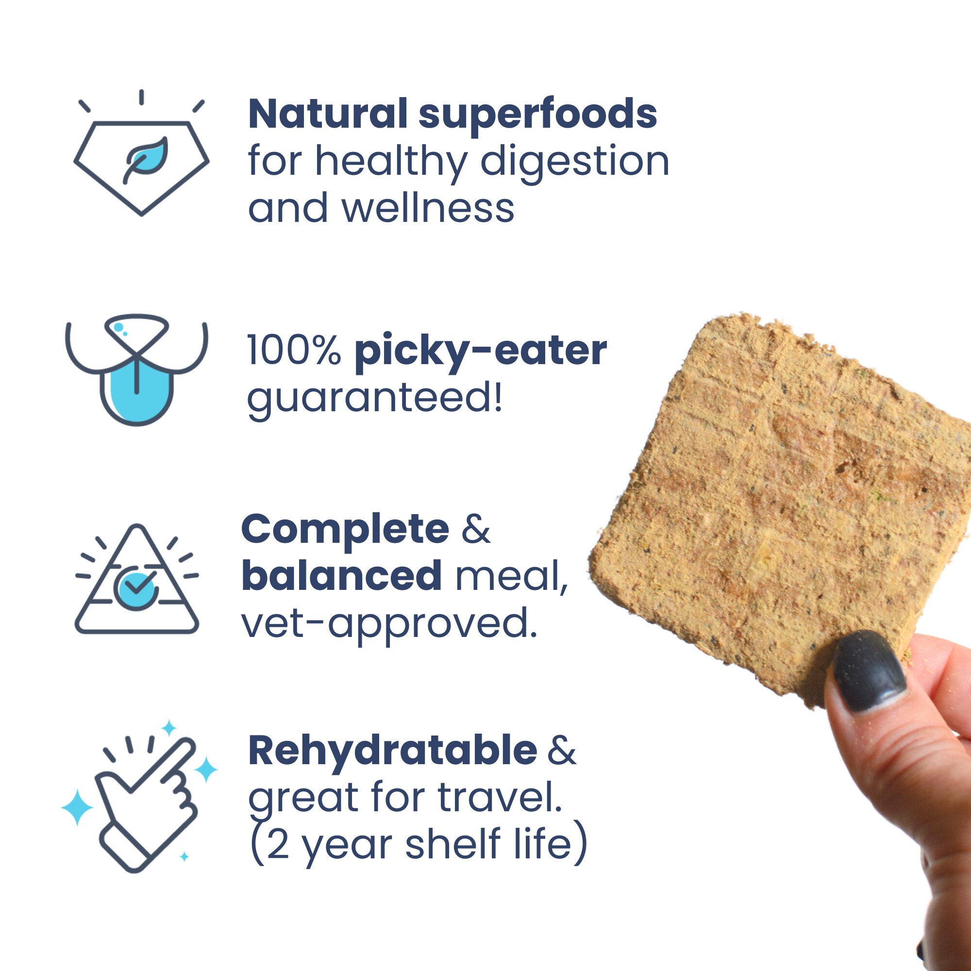 A complete & balanced rehydratable freeze-dried meal with superfoods. Made for the pickiest of eaters!