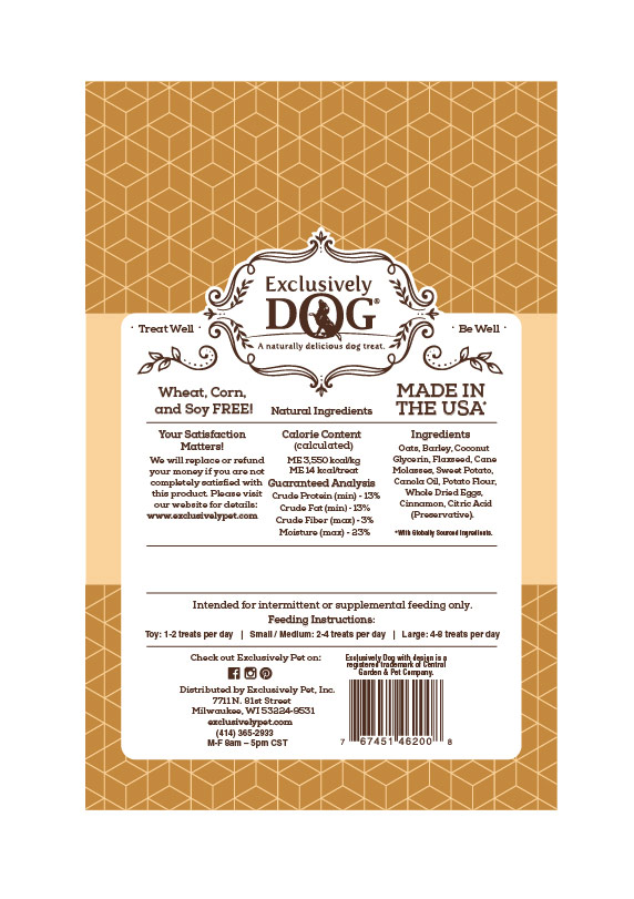Ingredients: Oats, Barley, Coconut Glycerin, Flaxseed, Cane Molasses, Sweet Potato, Canola Oil, Potato Flour, Whole Dried Eggs, Cinnamon, Citric Acid (preservative).