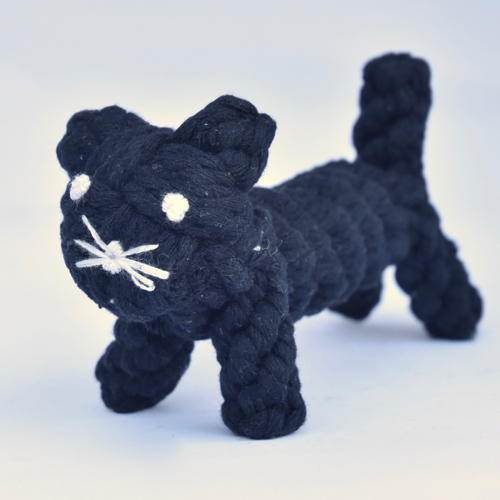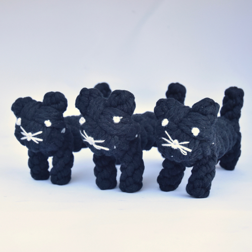 These wonderful hand-tied rope toys and the newest addition to the Bella Bean Family of goods. These rope toys are wonderful for the avid chewer and great to play fetch with. As the rope unravels over time, we recommend retying to see what new shape your animal will become! Safe non-toxic dyes are used and this item is made in China. 5.5 inches X 2.5 inches.