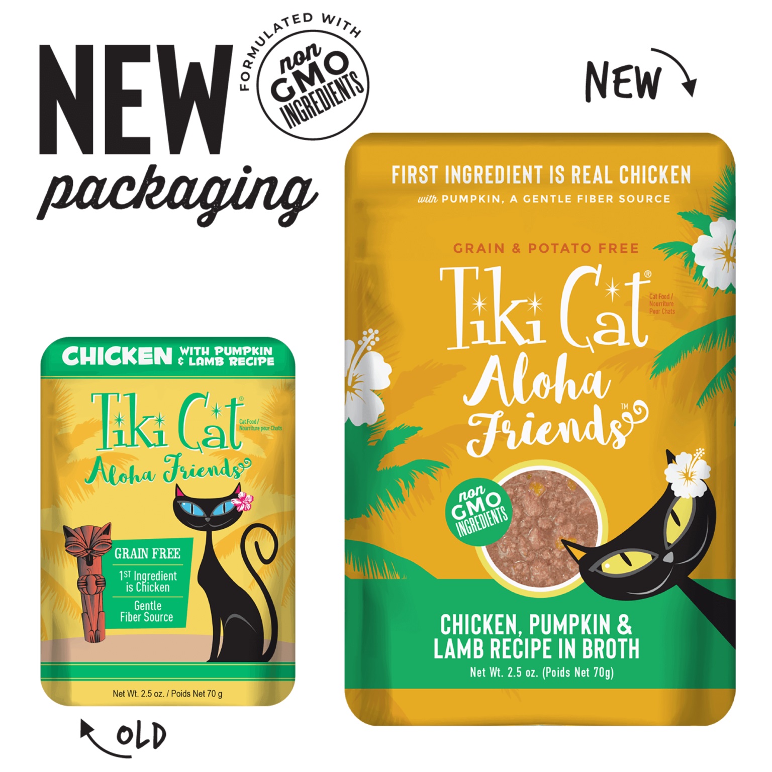 Tiki Cat® Aloha Friends™ are delicious meals that feature chicken with easy-to-digest pumpkin.