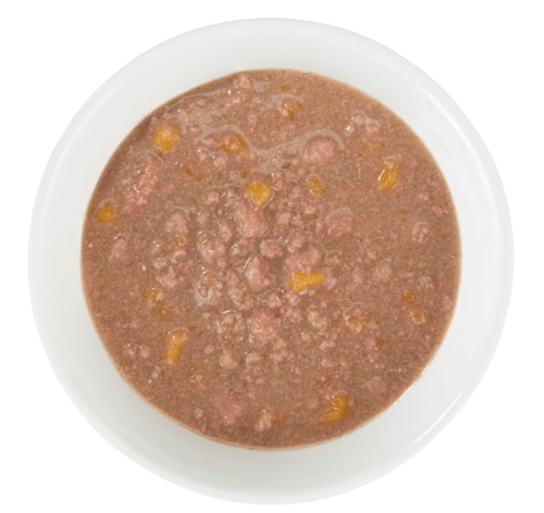 Chicken, chicken broth, pumpkin, lamb, dicalcium phosphate, xanthan gum, potassium chloride, choline chloride, magnesium sulfate, salt, calcium carbonate, taurine, zinc amino acid chelate, iron amino acid chelate, vitamin E supplement, ascorbic acid (source of vitamin C), thiamine mononitrate (vitamin B1), niacin (vitamin B3), manganese amino acid chelate, vitamin A supplement, copper amino acid chelate, calcium iodate, calcium d-pantothenate, sodium selenite, riboflavin, vitamin B12 supplement, pyridoxine hydrochloride (vitamin B6), folic acid, vitamin D3 supplement, biotin, menadione bisulfite complex.