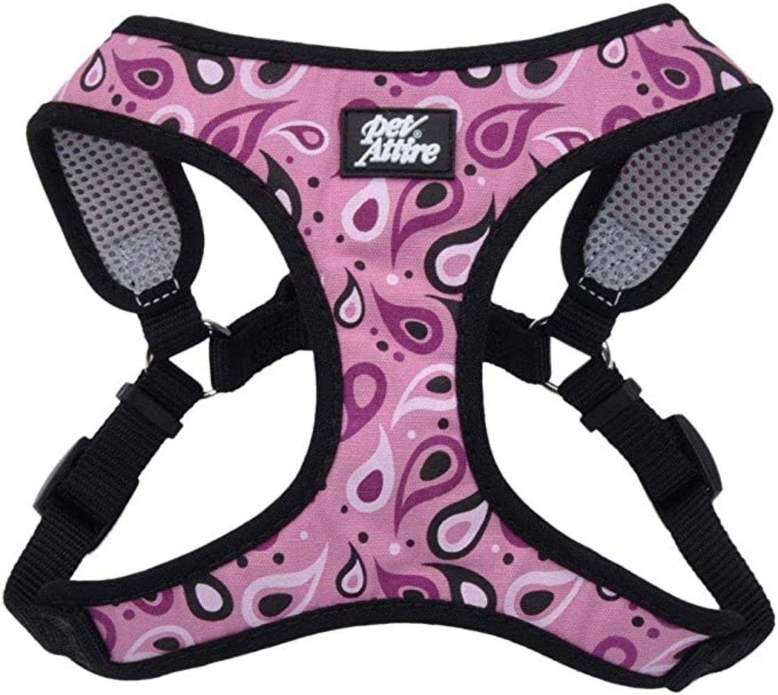 Ribbon Designer Wrap Adjustable Dog Harness, Pink Paisley