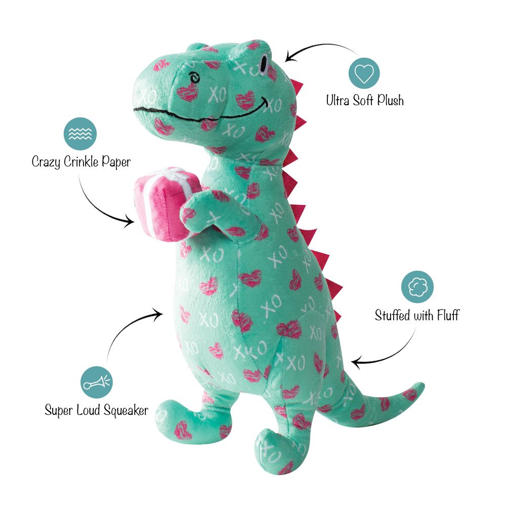 Sending hugs & kisses! Petshop by Fringe Studio “XO Rex” is perfect for playtime, anytime. Made with a super loud squeaker and crazy crinkle paper details, this toy was designed with interactive play in mind. Whether you squeak, crinkle or toss it, it'll steal your pups heart and soon be one of their favorites. Great for all sized dogs and not intended for aggressive chewers.