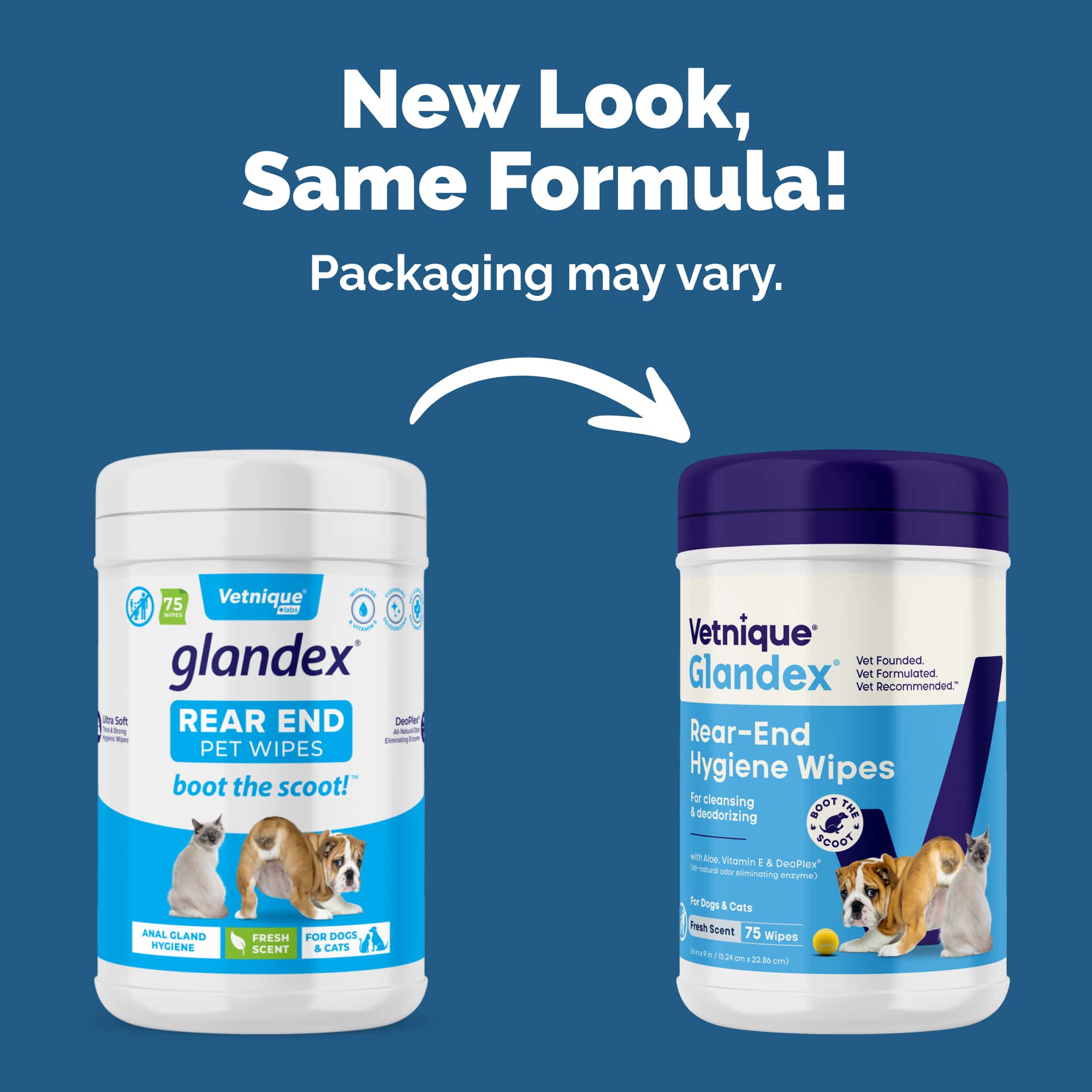 Glandex Wipes Glandex® Wipes are a great choice to be used in conjunction with our Glandex® Oral Supplements to help keep your pet's anal gland region healthy and smelling their best! Anal gland problems literally stink. Fortunately Glandex® Pet Wipes can help to reduce the unpleasant odors associated with anal gland problems! They are also specifically designed to assist in cleaning the anal region after anal gland expression as well as to help support healthy anal glands. Glandex® Pet Wipes are also great for cleaning other parts of the body and for general hygiene of your pet's rear. Unlike ordinary wipes, Glandex® Pet Wipes are gentle enough for daily use on sensitive areas but strong enough to clean and deodorize difficult odors and mess. Glandex® Pet Wipes contain DeoPlex® natural enzymatic deodorizers and a fresh scent fragrance to keep pets smelling their best! Plus Glandex® Wipes contain Aloe and Vitamin E to help support a healthy coat and skin! Safe for daily use in dogs & cats. Non-toxic, alcohol, and paraben free!