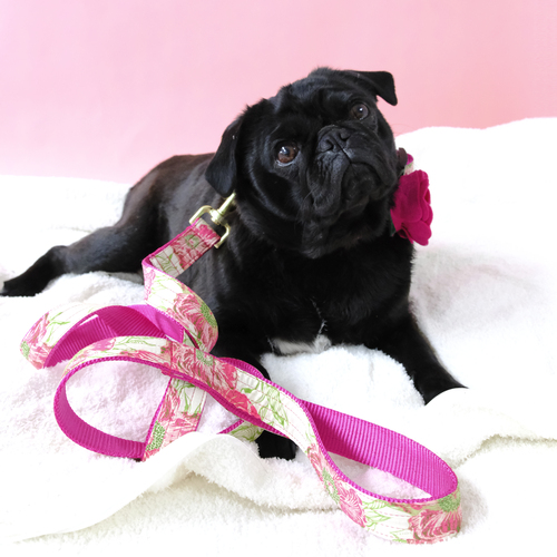'Audrey' Vibrant Pink Floral Cotton Voile Dog Collars & Leashes