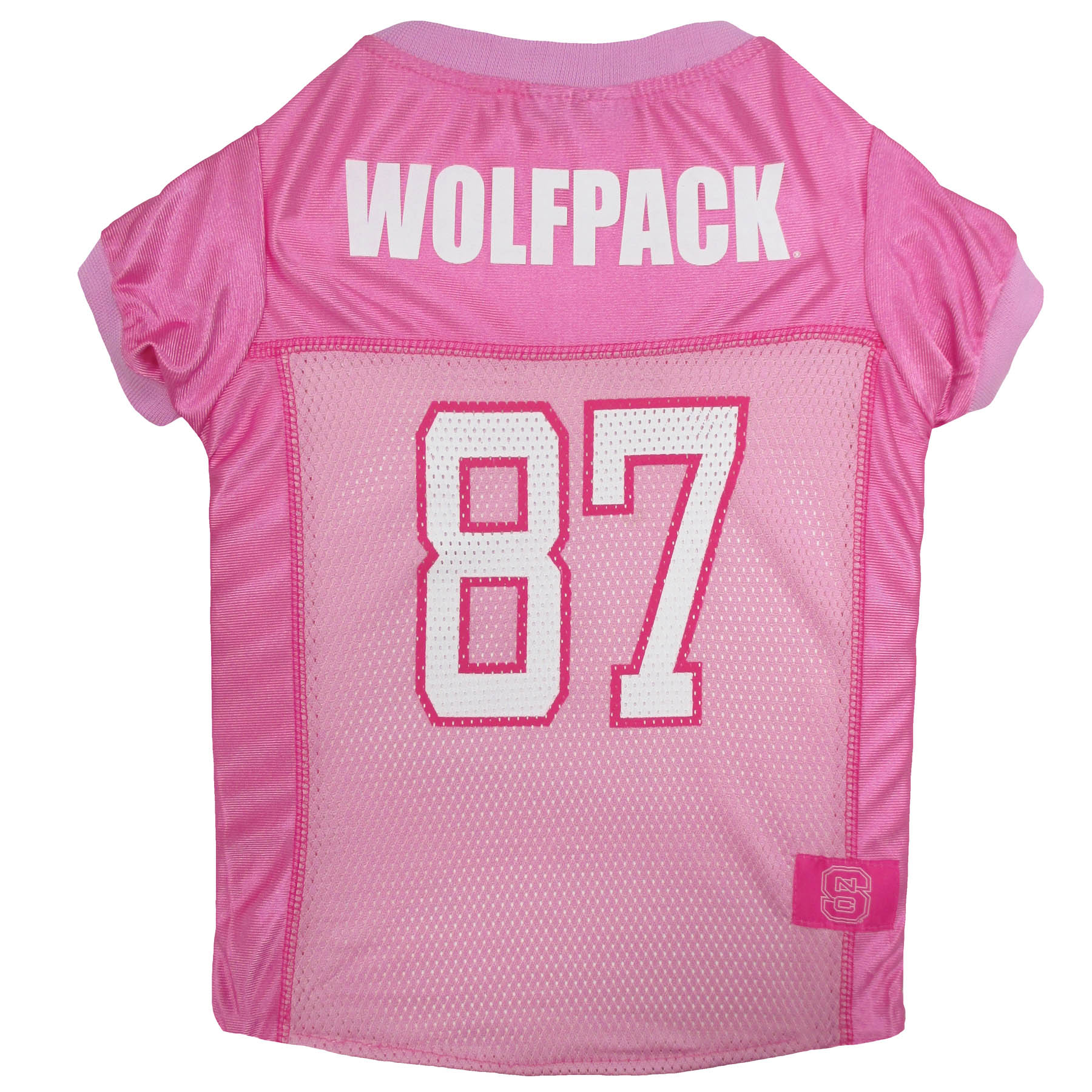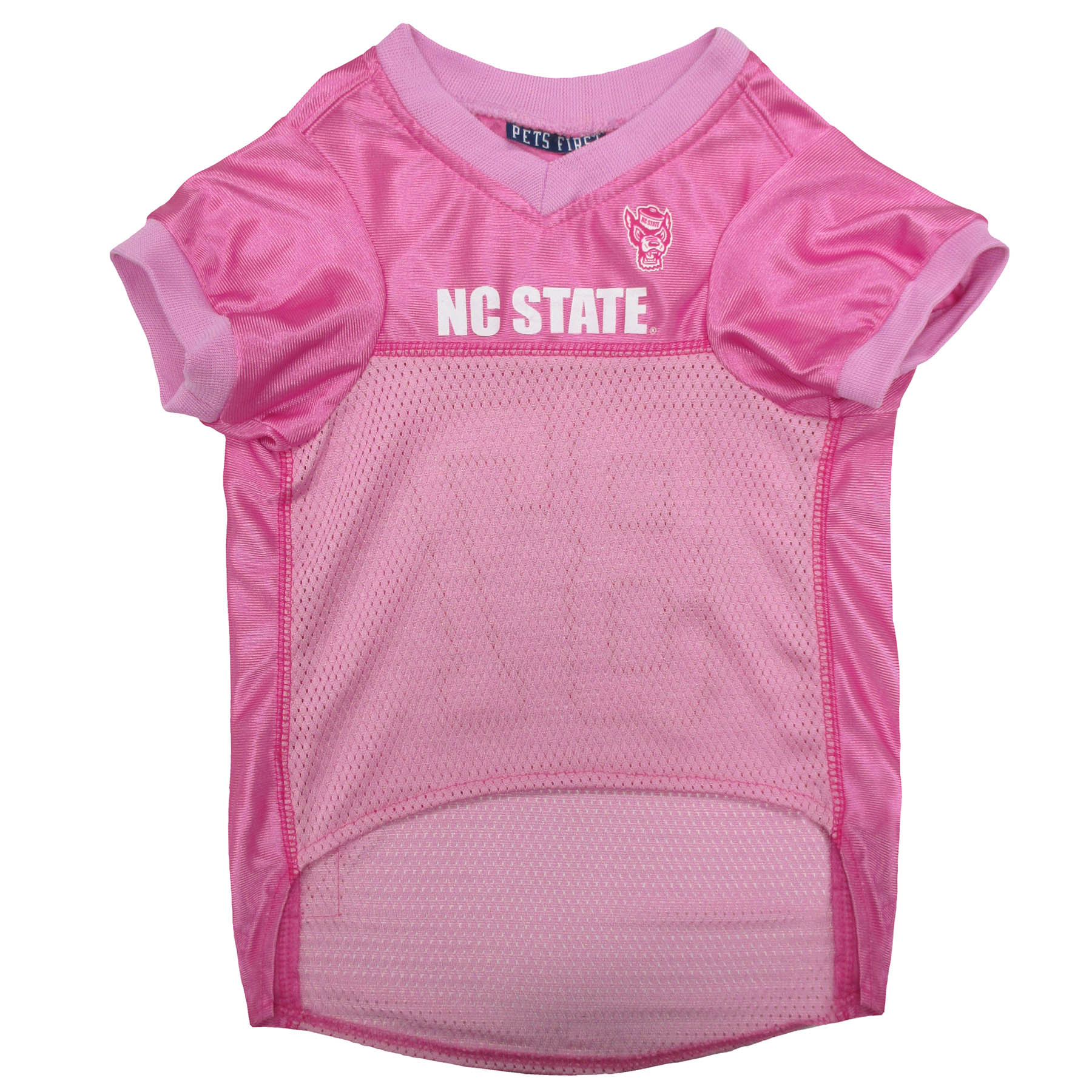 Officially licensed pink dog jersey! This dog jersey is made of 100% pink satin and poly mesh jersey with woven trim on neck and sleeves. The back of the jersey has screen printed team logo, numbers and woven jock tag. Front of the jersey has screen printed licensed team logo.