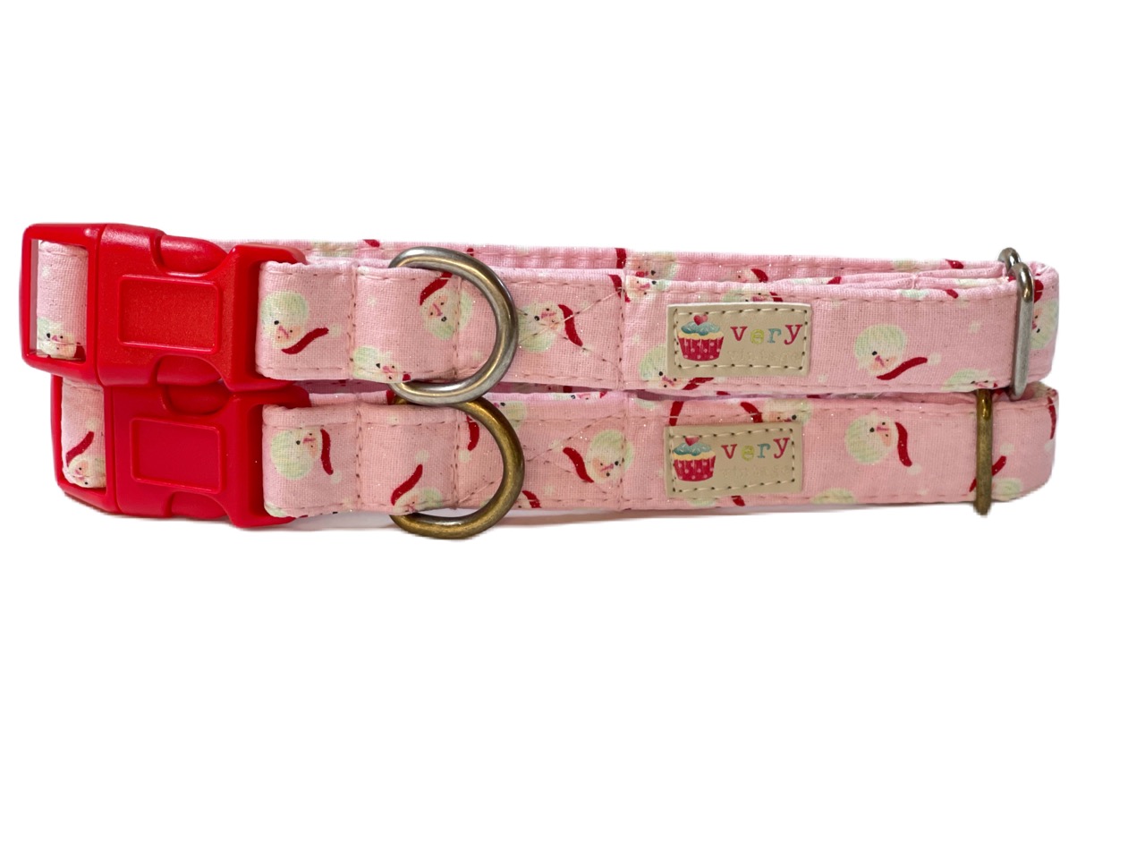 Pink Santa – Christmas Dog Collar | Holiday Cat Collar | Xmas | Seasonal | Handmade Organic Cotton Pet Collars & Leashes