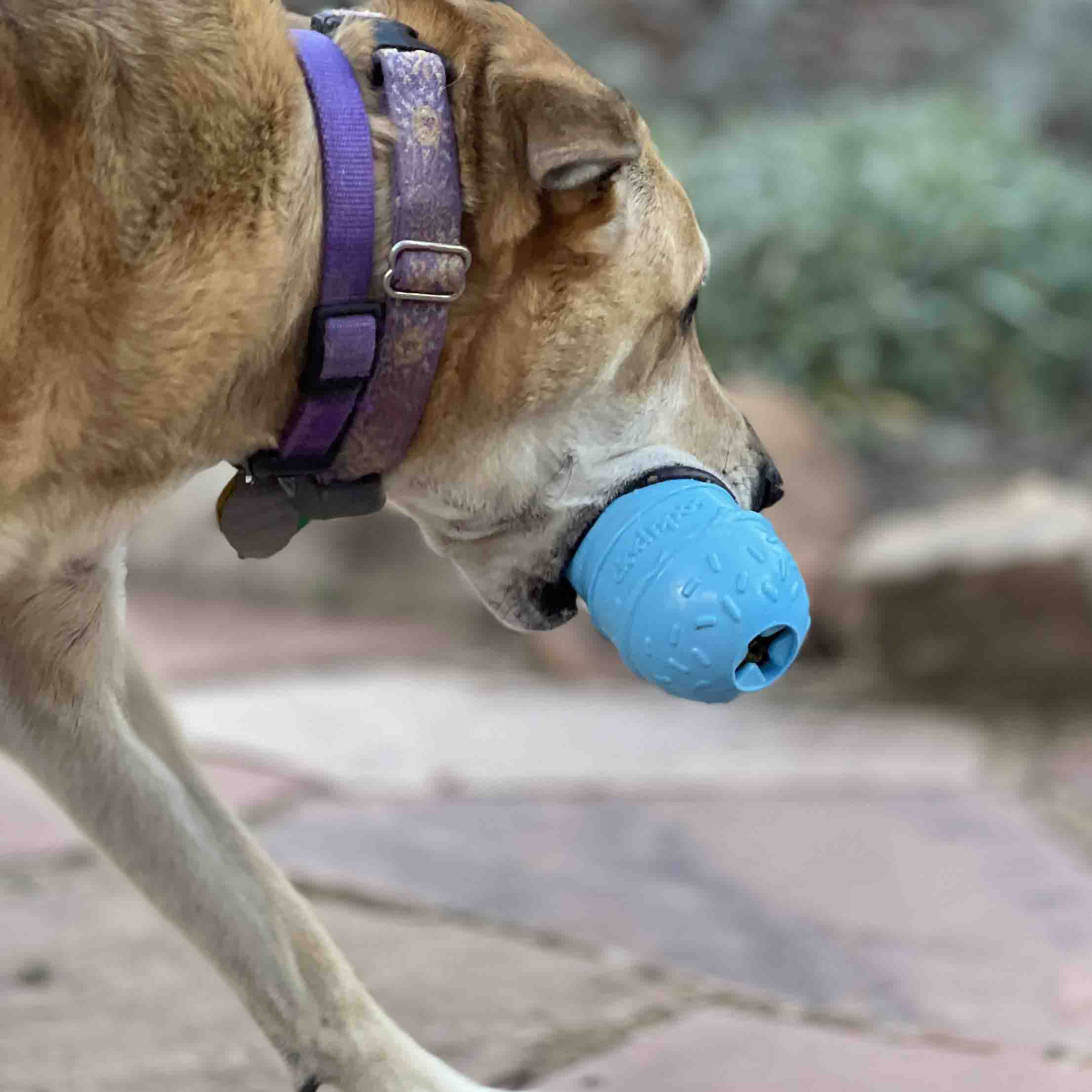 DISPENSES TREATS: Help your dog fight boredom by filling the Ice Cream Cone Toy with treats like kibble, canned dog food, peanut butter, or your favorite dog treat recipe. Best results: mix wet/dry foods. Freeze with treats inside to prolong use. SLOW FEEDER: If your dog is a "speed eater," serve your dog's meals inside this toy to slow down eating and keep your dog stimulated and entertained. REDUCES PROBLEM BEHAVIORS: Reduces problem chewing, helps reduce boredom, and relieves separation anxiety. MADE IN USA: Proudly keeping jobs in America! Designed and manufactured in the USA! ANIMAL & PLANET FRIENDLY: Material is FDA compliant, non-toxic and biodegradable. It is sustainably harvested helping us reduce our carbon footprint.