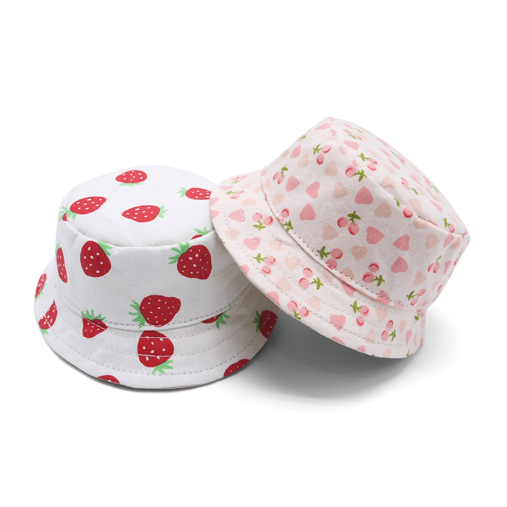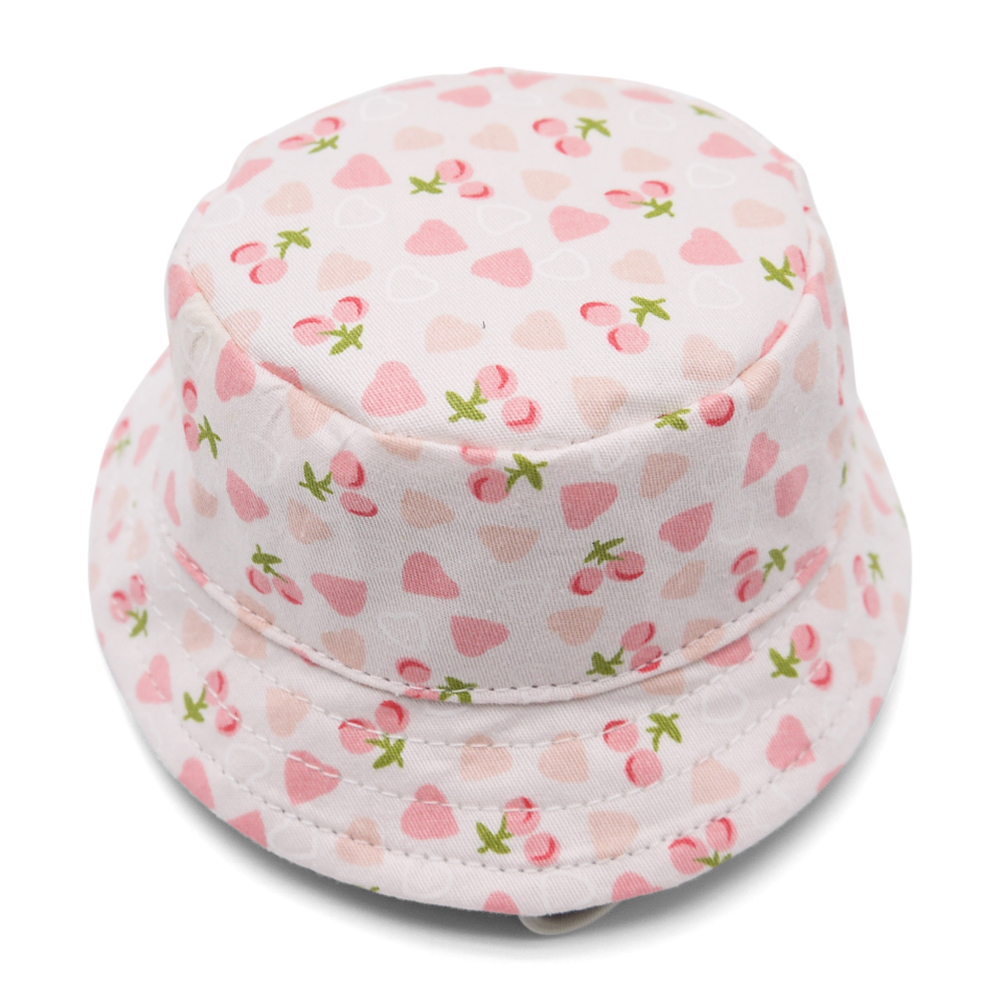 Add a touch of charm to your little one's wardrobe with this adorable Cherish Heart Bucket Hat. Crafted from soft, breathable fabric, this hat ensures all-day comfort while providing essential sun protection. The delightful design features a white base adorned with pink hearts and tiny cherries with green stems, making it a perfect blend of sweetness and style.