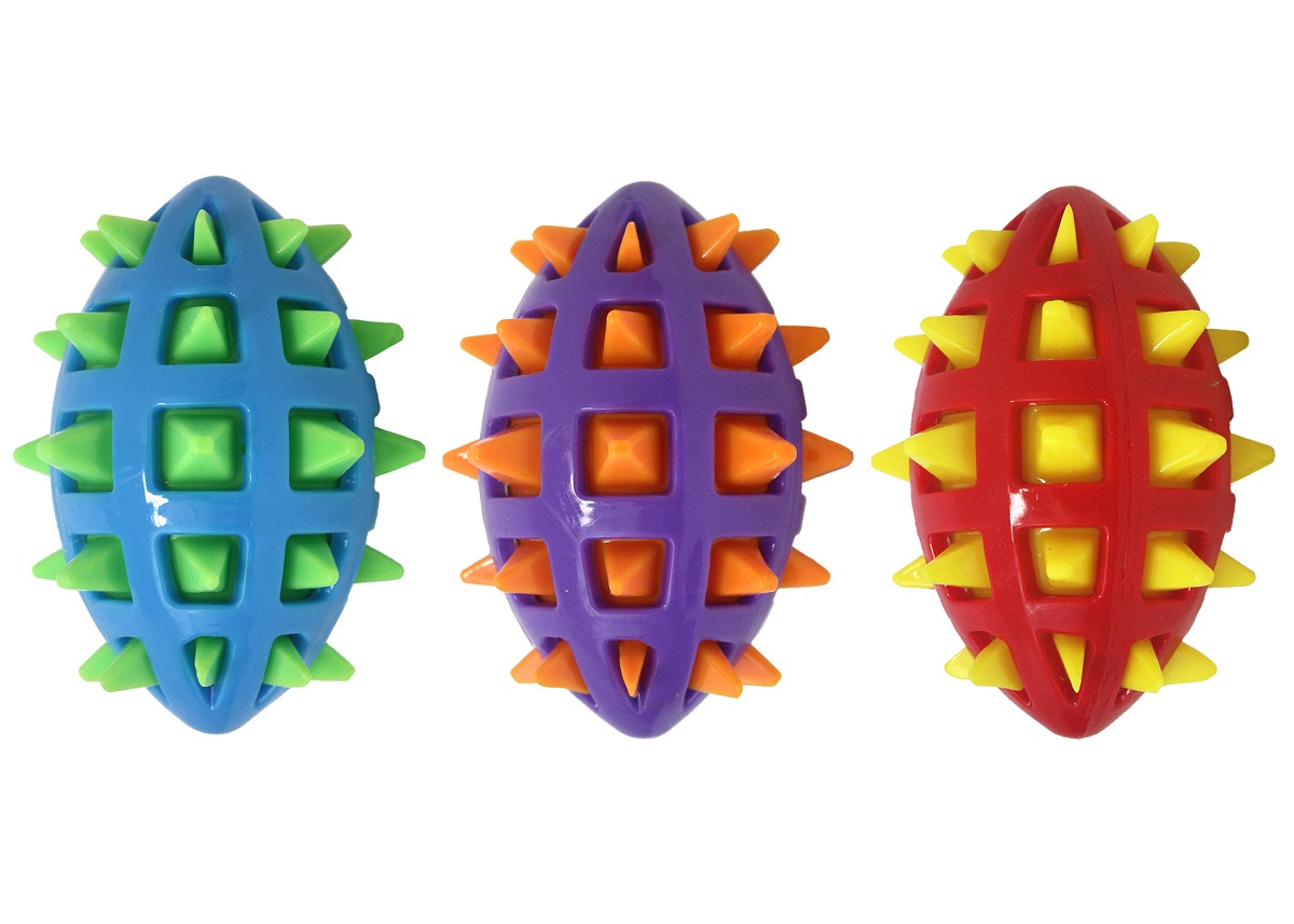 Multipet Spike TPR Football Dog Chew Toy Assorted Colors 5"