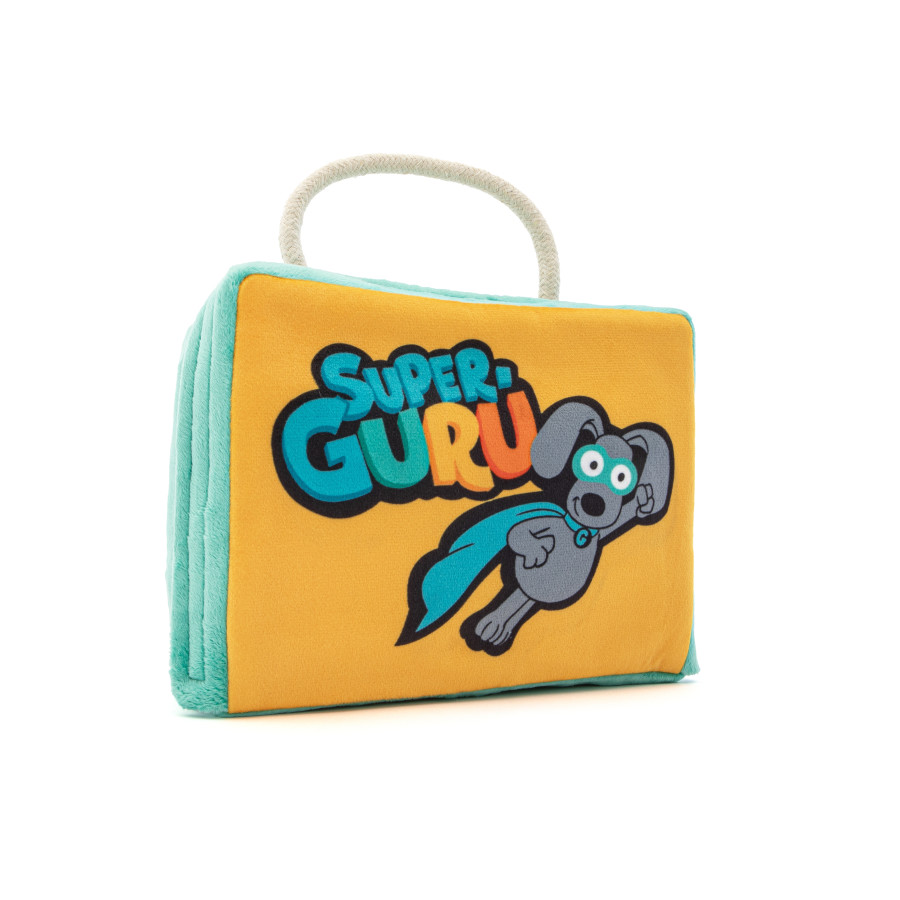 The Fun Box is more than just a toy travel case – it’s an on-the-go puzzle toy for active dogs! Add treats or favorite toys inside, close with Velcro, then watch dogs figure out how to get them out. The Fun Box is made of multiple layers of crinkly fabric that extends play time by engaging foraging instincts as dogs try to steal what’s inside – lunch, perhaps? The retro lunchbox design comes in two different styles: Super GURU and Juggling GURU.