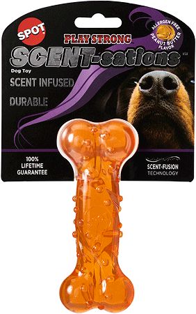 ETHICAL/SPOTPLAY STRONGSCENT-sations5" Bone Super durable TPR dog toys infused with peanut butter flavor. Nubs massage teeth and gums for a healthy mouth.