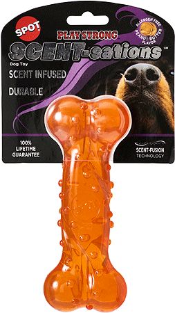 ETHICAL/SPOTPLAY STRONGSCENT-sations6" Bone Super durable TPR dog toys infused with peanut butter flavor. Nubs massage teeth and gums for a healthy mouth.