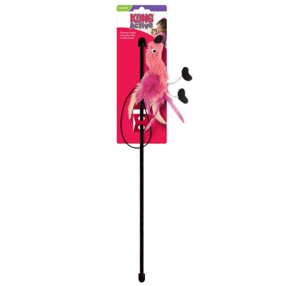The KONG Feather Teaser is designed for interactive play, and each toy contains KONG Premium North American Catnip for added stimulation. Bright feathers and a crinkle sound tempt cats to capture this toy.