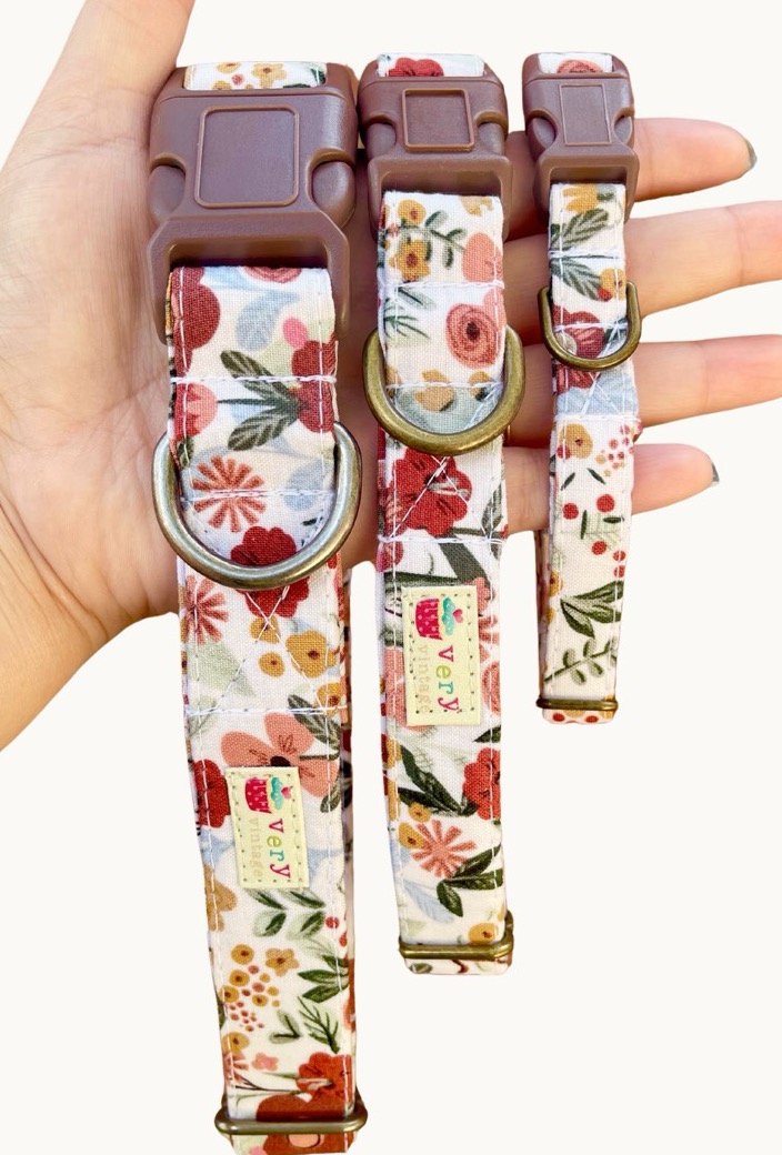 Beautiful Floral Pattern. Organic Cotton Dog & Cat Collars & Leashes. Eco-Friendly. Handmade in Los Angeles.