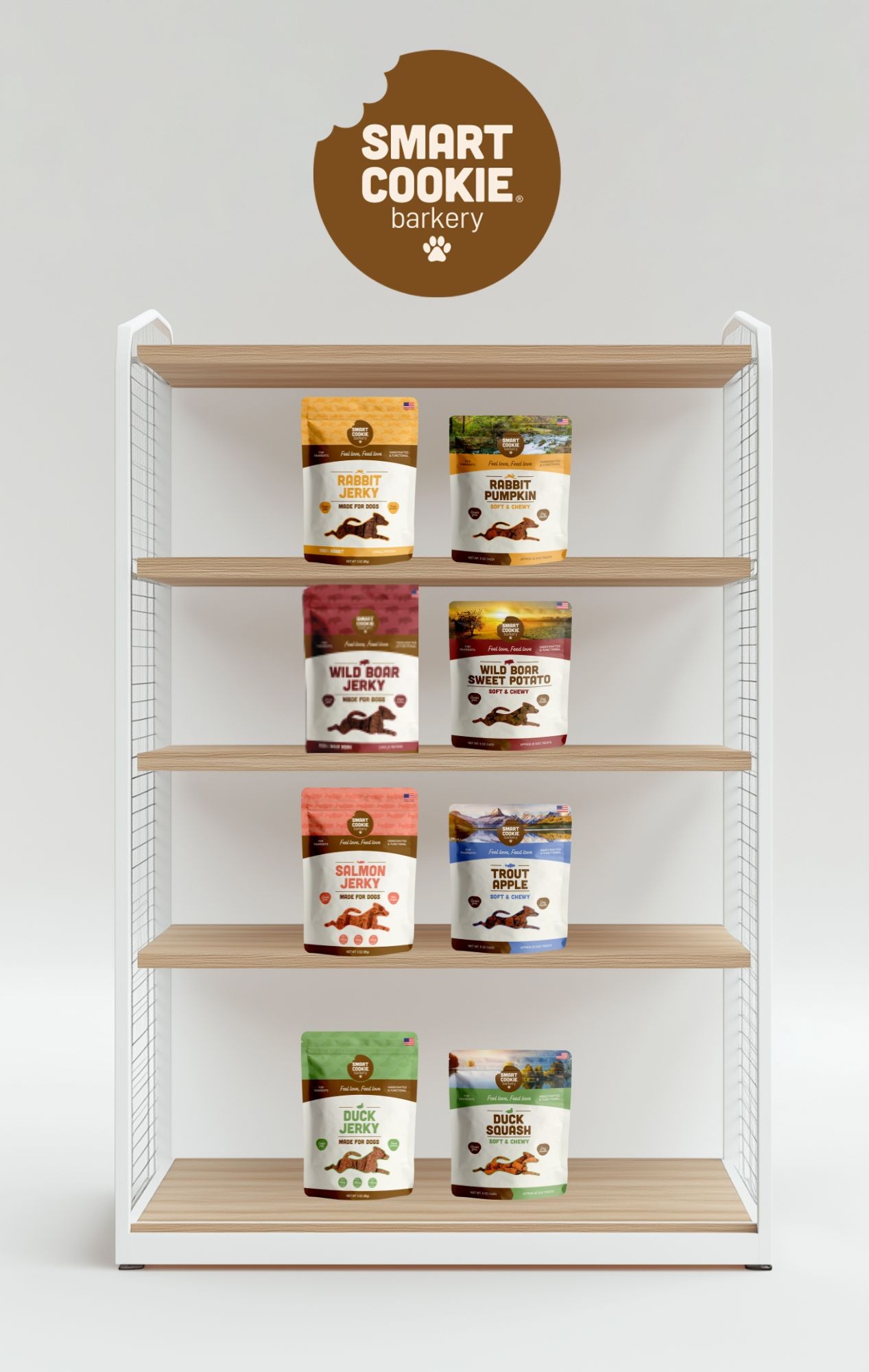 Smart Cookie Barkery Starter Bundles offer a low-risk way to introduce our all-natural treats to your store. This compact planogram includes best-sellers made with novel proteins—ideal for picky eaters, dogs with allergies, and sensitive stomachs.
