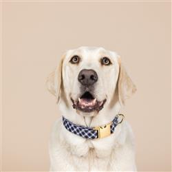 Upgrade your dog's look with a fashionable, durable collar featuring gold hardware and reinforced stitching for style and strength during adventures.