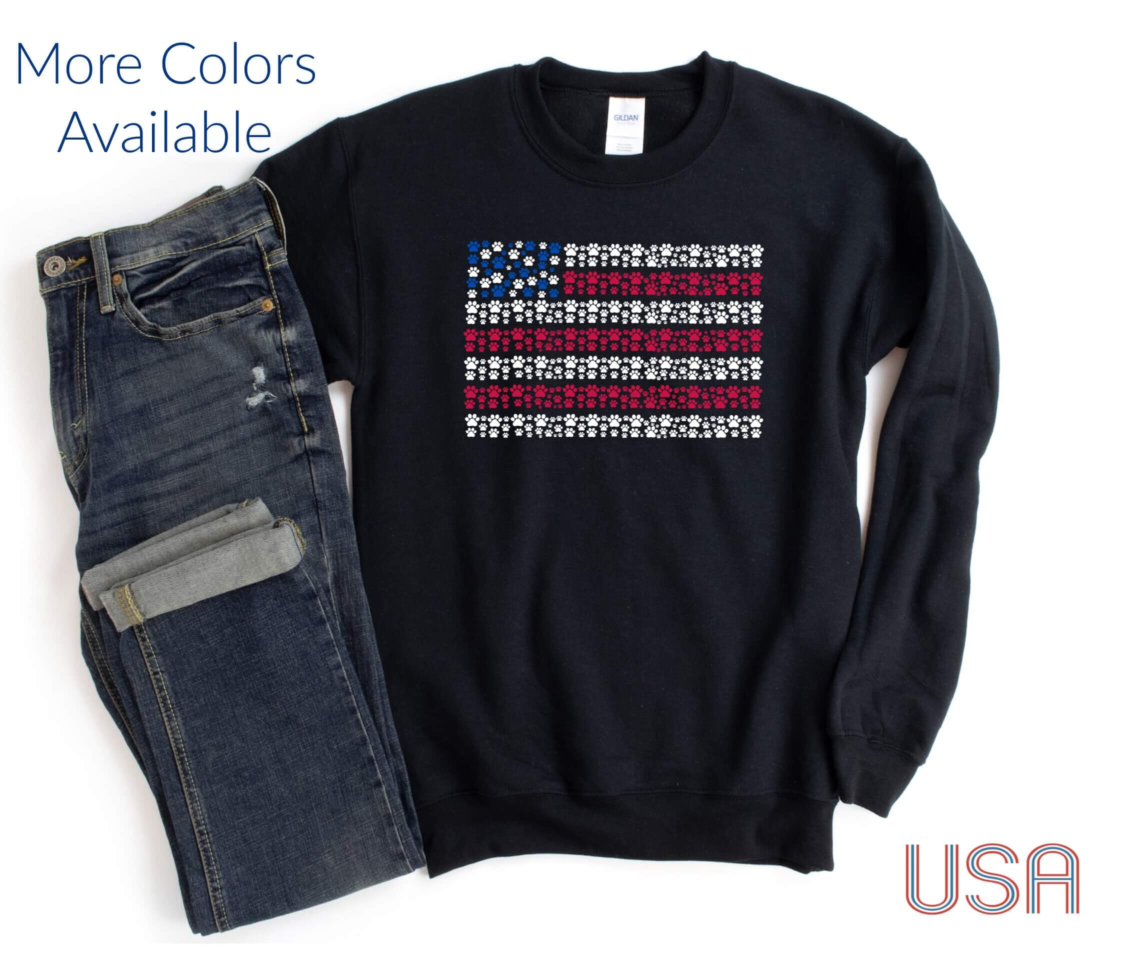 Patriotic Shirt | People Sweatshirt | Printed Crewneck | Patriotic Dog Mom | 4th of July | Memorial Day| Dog Mom Sweatshirt | Dog Lover Gift | Crewneck Sweatshirt | PAWS AMERICAN FLAG