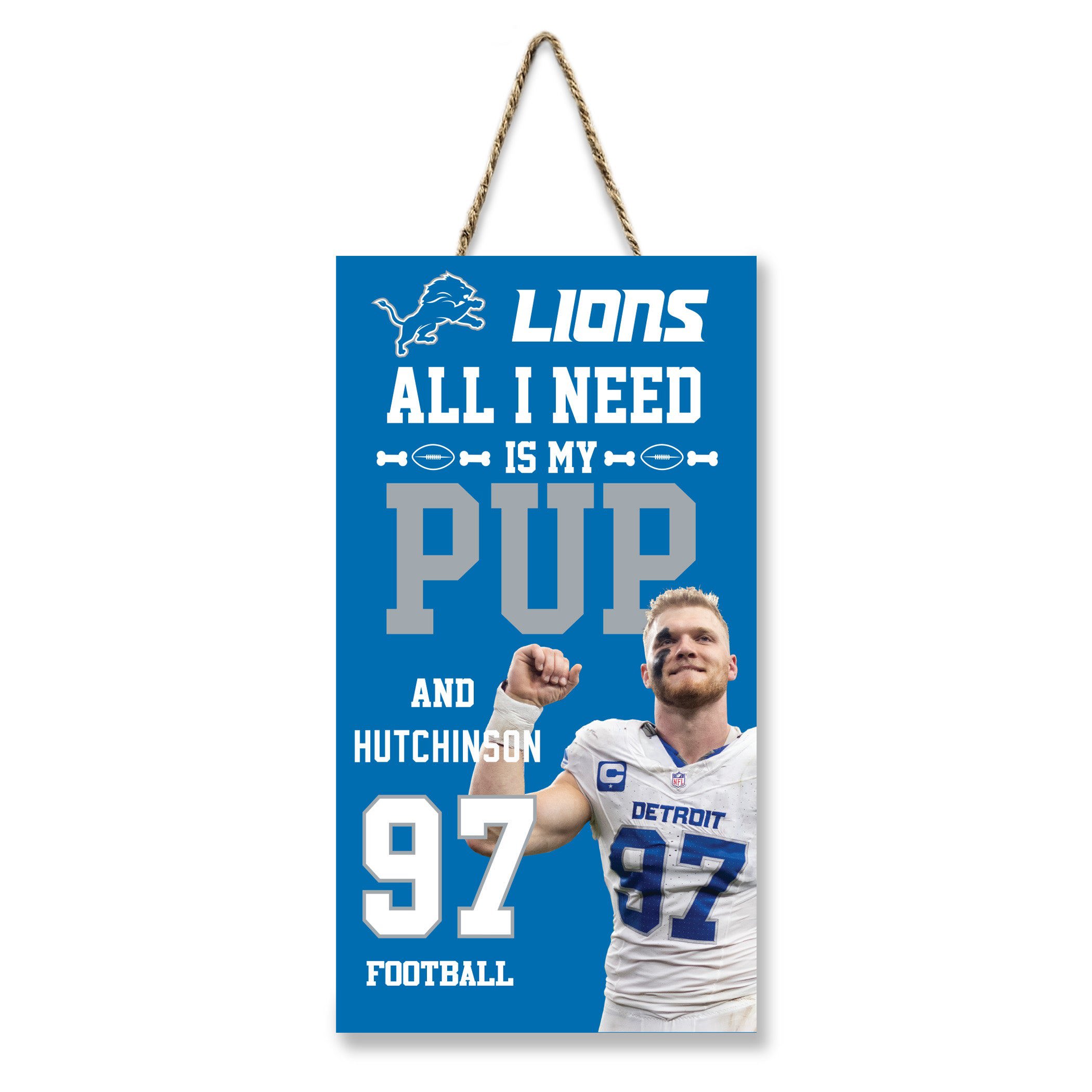 AIDAN HUTCHINSON (DET) "ALL I NEED IS MY PUP AND FOOTBALL" SIGN