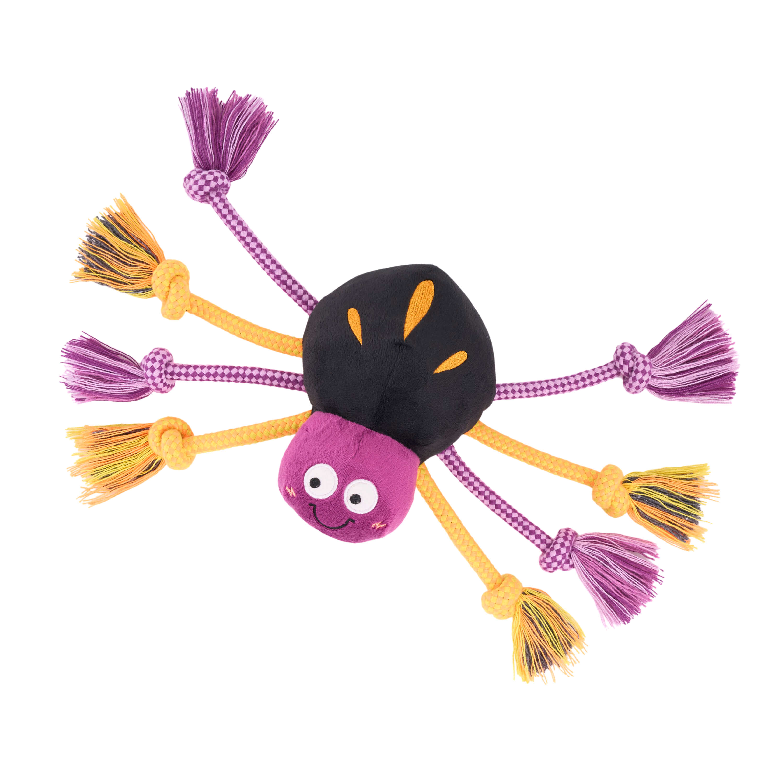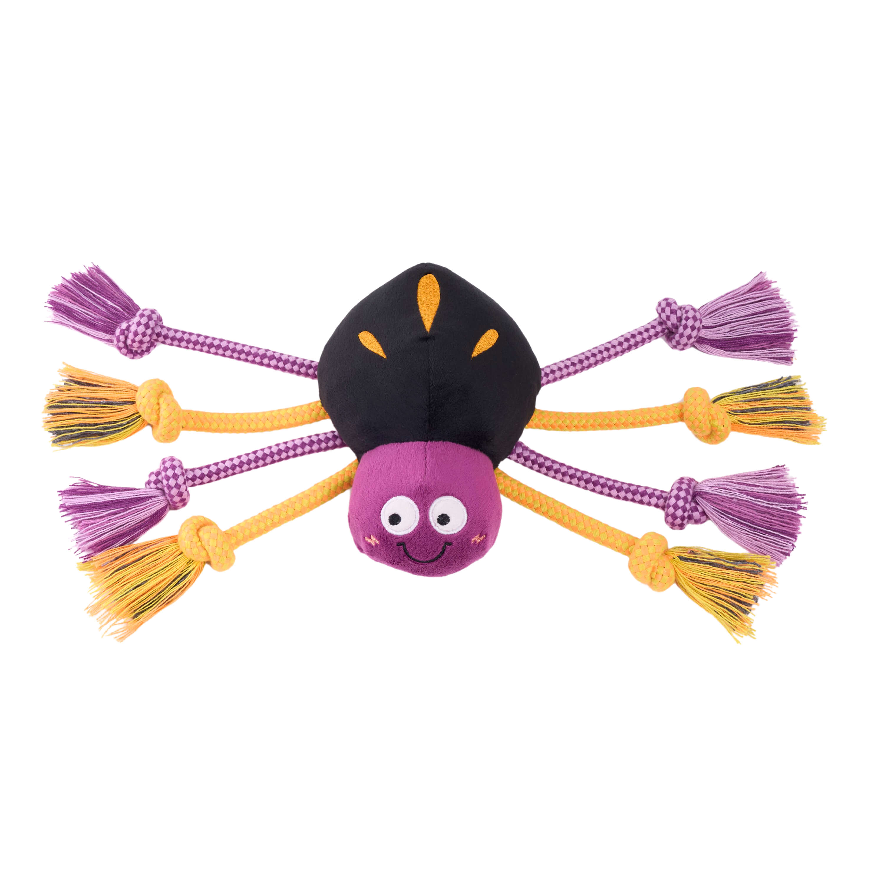 Get into the spirit of spooky season with the frighteningly fun ecoZippy Halloween Spooky Spider! ecoZippy toys from ZippyPaws put an eco-friendly twist on your dog's playtime! Constructed using durable eco-friendly natural materials, ecoZippy toys are perfect for playing with your environmentally conscious pup. Halloween Spooky Spider features 8 cotton rope legs, 1 round squeaker, and embroidered details on the back. Contains stuffing. ZippyPaws uses stuffing made from 100% recycled materials.