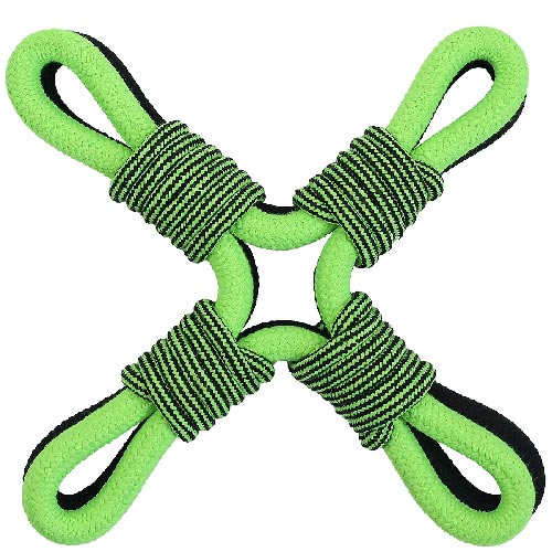 The X is a must-have for multi-dog households and energetic playdates! This toy is crafted from durable, knotted polyblend rope, making it perfect for tugging and interactive play. The unique design allows multiple dogs to engage at once, promoting healthy exercise and bonding. Each arm of the X is easy to grip, ensuring endless fun for your pups. Ideal for both solo and group play, this toy will keep your dogs entertained and active. Built tough to withstand even the most vigorous tugs, it's a fantastic addition to any dog's toy collection!