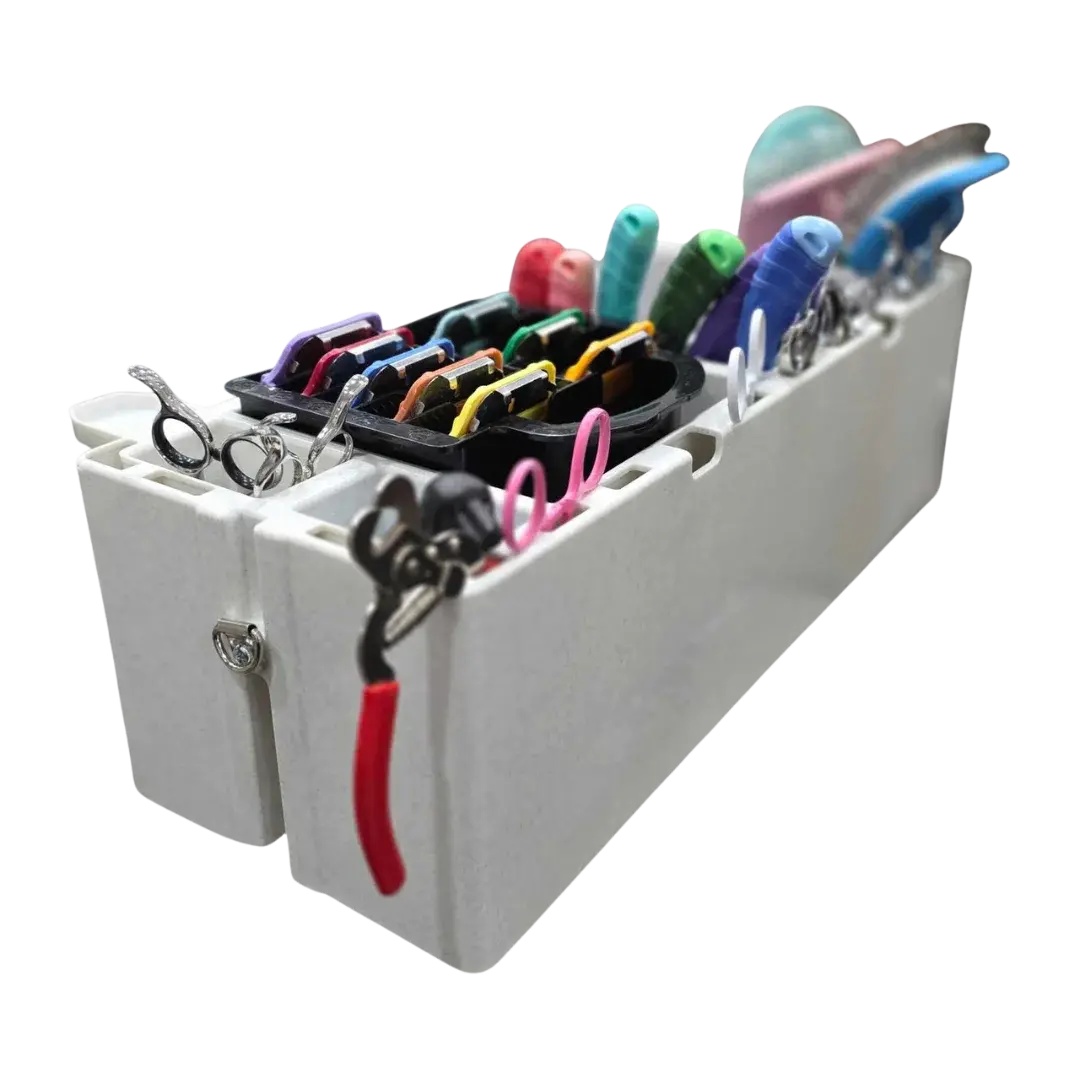Specifically designed to accommodate larger clipper blades and comb attachments, securely holding items to prevent shifting, damage, or dulling