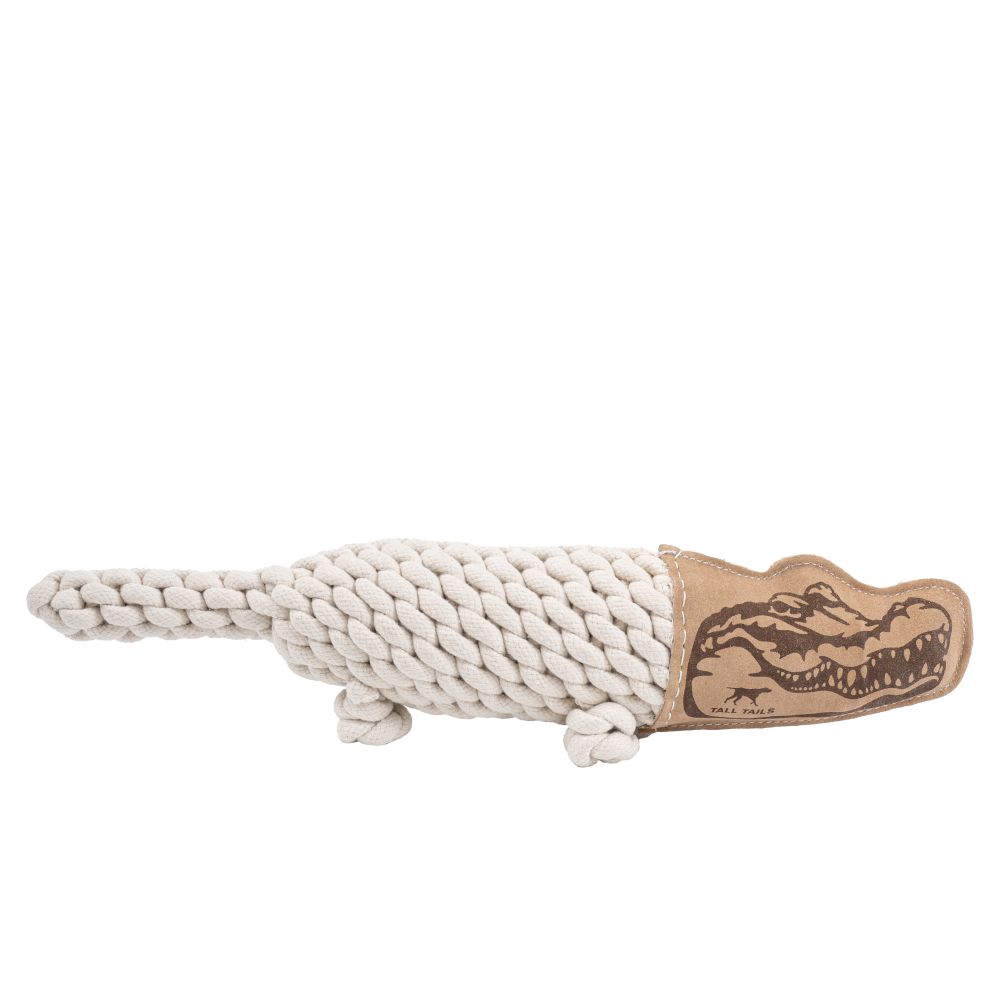 Whether your pup wants to play a rousing game of fetch or tug-of-war, this Natural Leather Crunch Crocodile Rope Dog Toy is made with you and your pup in mind. No toxic chemicals, artificial coloring, or simulated flavoring are used in the production process. This toy is made for dogs who love to retrieve and tug, but is not recommended for aggressive chewers.