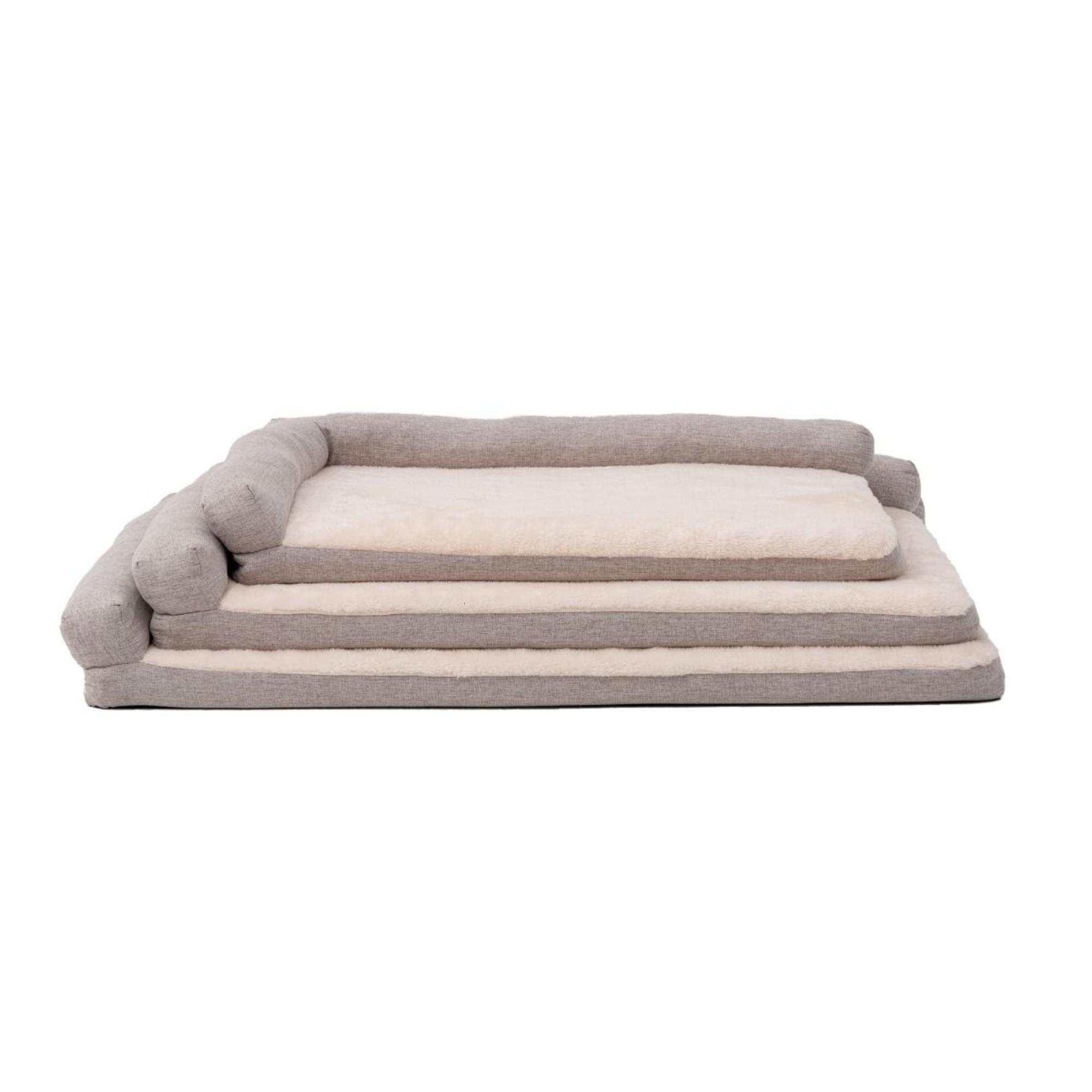 Find Your Territory with Territory's Orthopedic Lounger Dog Bed. Designed with dual bolster sides that cradle curlers in comfort while giving sprawlers room to stretch, this bed features a supportive orthopedic foam base that promotes healthy joints and restorative sleep for dogs of all ages. A water-resistant liner shields the foam from accidents and messes, while the neutral two-tone design blends seamlessly with any home décor. Easy to maintain, the cover is machine washable and dryer friendly for hassle-free clean up.