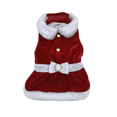 Ho Ho Ho! Your pet will be the center of attention this holiday Season in Hip Doggie's newly designed Mrs. Claus Dress. Made of luxurious stretch velvet and white fur with White Belt, featuring a Bow with Gold Buckle. This Dress has a velcro closure at the neck and stomach which makes getting dressed up for the holidays a cinch.