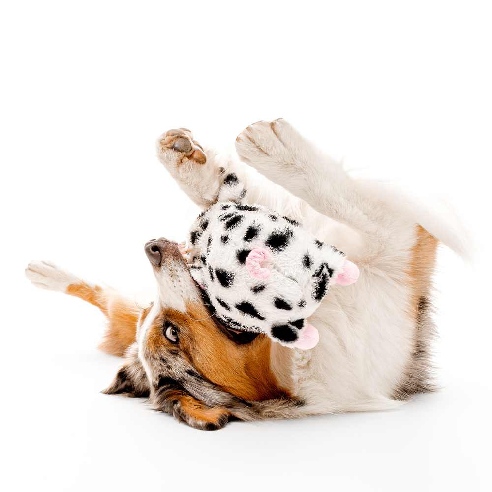 Your dog will love the enticing all-natural Bacon scent embedded in this Playology Plush Pig. Fresh bursts of scent are released with every chew, keeping your dog engaged 7x longer than with unscented toys. With a squeaker and soft plush body, this pig is perfect for chewing and cuddling!