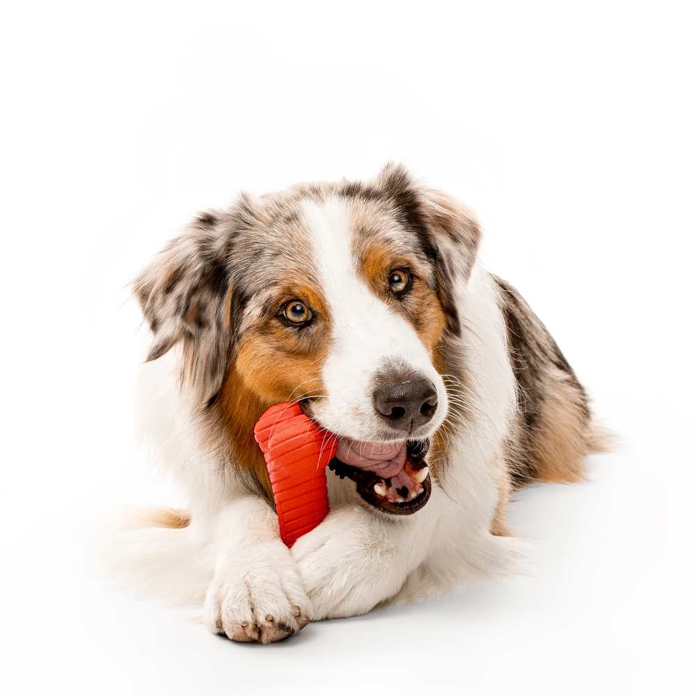 Available in Small, Medium, and Jumbo sizes, this toy is great for dogs of all sizes. The Small size is ideal for pups up to 25 lbs, the Medium size is perfect for pups up to 50 lbs, and the Jumbo size is suited for pups 50 lbs and up.
