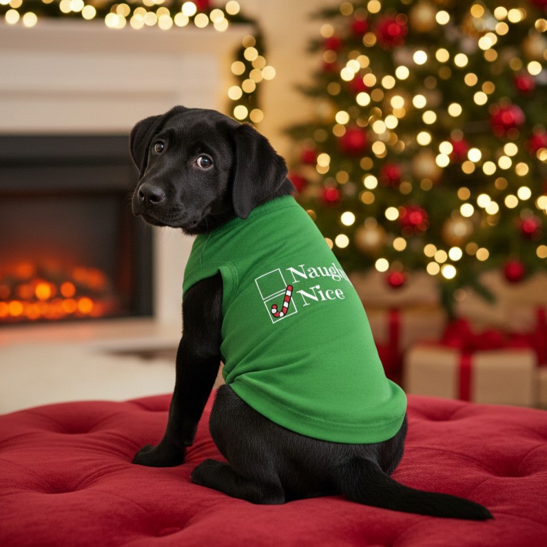 Dress your dog for the holidays in this festive green Naughty or Nice Christmas shirt — because your good pup deserves to show off their spot on Santa’s list! With a candy cane checkmark proudly marking Nice, this cheerful tee spreads holiday joy everywhere your dog goes. Made from soft, breathable 100% cotton, it’s perfect for Christmas photos, family gatherings, or cozy cuddles by the tree!