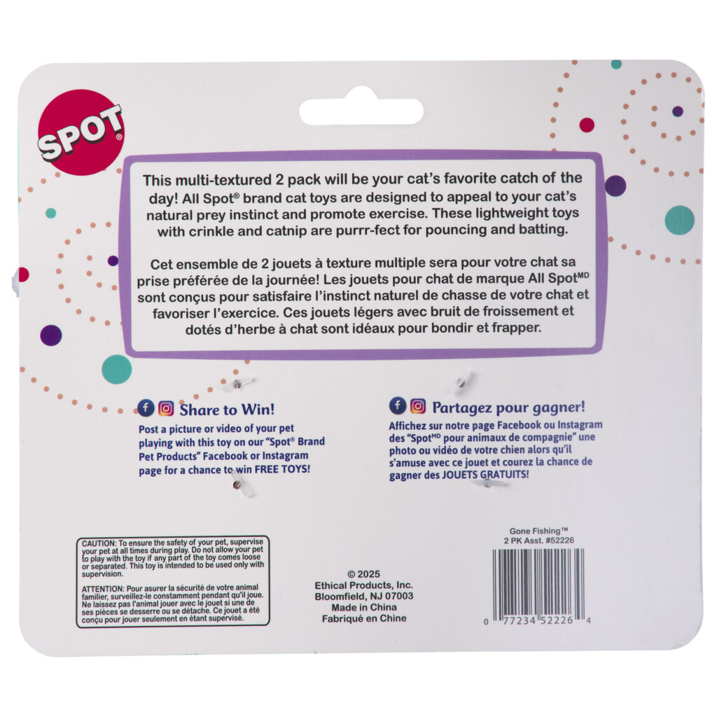 This multi-textured 2 pack will be your cat’s favorite catch of the day. Spot brand cat toys are designed to appeal to your cat’s natural prey instinct and promote exercise. These lightweight toys with crinkle and catnip are purrfect for pouncing and batting.