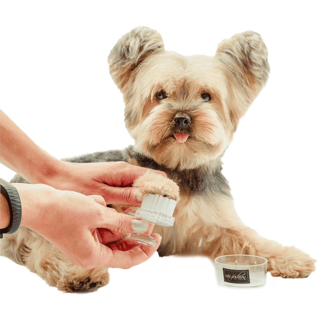 Dog Fashion Spa's ultra-soft brush for dog paws that gently exfoliates dead skin cells and invigorates the skin, capturing the essence of Quality Life for Dogs