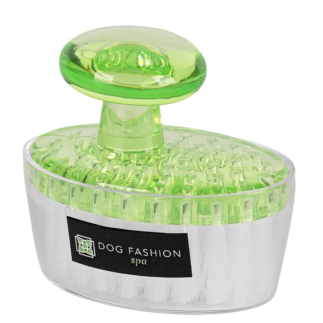 Dog Fashion Spa's ultra-soft brush for dog paws that gently exfoliates dead skin cells and invigorates the skin, capturing the essence of Quality Life for Dogs