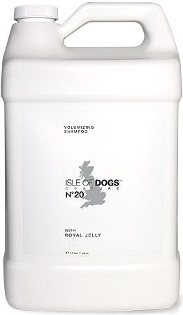 ISLE OF DOGS No. 20 Royal Jelly Shampoo Gallon Isle of Dogs believes the beauty and wellness of your dog are inextricably linked. That is why they created Coature, a 3-step weekly grooming ritual that keeps skin healthy and hair manageable. Wash, condition and brush once a week for a healthy, happy dog who shines! For home and professional use. Promotes hair growth. Also maintains, conditions, and adds volume to the existing coat. Especially helpful with dogs that have dropped their coat after a litter, false pregnancy, or a "season." To help repair hair or stimulate new growth, use regularly. Highly effective in controlling shedding. Contains pure, fresh Royal Jelly, a complex substance produced by the young nurse bees to feed the queen bee. Featuring remarkable amounts of protein, lipids, and vitamins that facilitate regeneration. It gives your dog a richer, fuller coat. Directions: Wet hair thoroughly, apply shampoo, lather, and rinse to remove dirt and excessive oils. For optimum results apply shampoo again, lather, and let sit in the coat for 2-5 minutes. Rinse thoroughly. Condition if desired (with Formula No. 50 or No. 51), then dry. May be diluted 10:1 No. 20 Royal Jelly shampoo is a highly effective tool in the fight against shedding. Formulated with Royal Jelly, a protein-rich botanical which stimulates new hair growth, repairs damage, and reduces shedding. It is also great for building extra volume without softening the coat. Ingredients Water, Sodium Laureth Sulfate, Cocamidopropyl Betaine, Cocamide DIPA, Royal Jelly Extract, Oenothera biennis (Evening Primrose) Oil, PEG-3 Distearate, Fragrance, Polysorbate 20, Sodium Chloride, Iodopropynyl Butylcarbamate,DMDM Hydantoin, Citric acid, Caramel No. 20 is also highly effective when used weekly in conjunction with No. 91 Royal Jelly Coat Supplement.