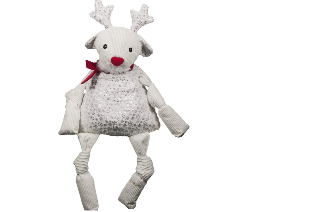 Like memories of our favorite red and white Holiday candy, our Holiday 2021 Peppermint Collection combines delicious ribbons of candy-colored sweetness, and none sweeter than our Reindeer Squooshie. Hes soft, hes plush and hes peppermint sassy with a cream-colored body and peppermint-striped scarf and antlers. He screams snuggle, and every dog will have his and her (holi)day with this classic in the making. And even better Our Squooshie Reindeer comes in two sizes.