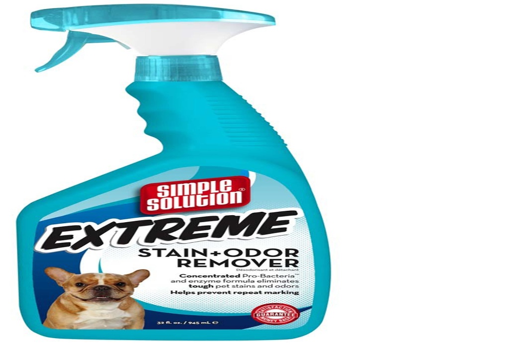 Confidently clean tough urine, feces, and vomit stains. Simple Solution Extreme Stain and Odor Remover is 3X stronger than our regular stain and odor remover, with a professional-strength Pro-Bacteria and enzyme formula that breaks down, neutralizes, and permanently removes stains and odors, while discouraging repeat visits. Worry-free use on carpet, upholstery, or other water-safe surfaces in your home. Safe around children and pets when used as directed. DESIGNED FOR THE TOUGHEST ODORS AND ORGANIC STAINS- Simple Solution pet Extreme Stain and Odor remover is three times stonger than our regular formula to eliminate tough dog and cat odors and stains.|ERASE ODORS AND STAINS - Discourage repeat marking with our professional-strength Pro-Bacteria and enzyme formula, which breaks down and eliminates stains and odors.|SPECIFICALLY FOR PET ODORS AND ORGANIC STAINS - Safely and quickly removes dog and cat urine, feces, and vomit on carpet, upholstery, bedding, fabric toys, clothing, or other water-safe surfaces in your home|TOUGH ON STAINS, NOT ON YOUR FAMILY - Safe around your children and pets when used as directed.|NEW PATENTED MULTI-FUNCTIONAL SPRAYER - Now designed with a new patented 3-in-1 nozle sprayer (foam, mist, and stream). br/>Sold in Quantity of: 1
