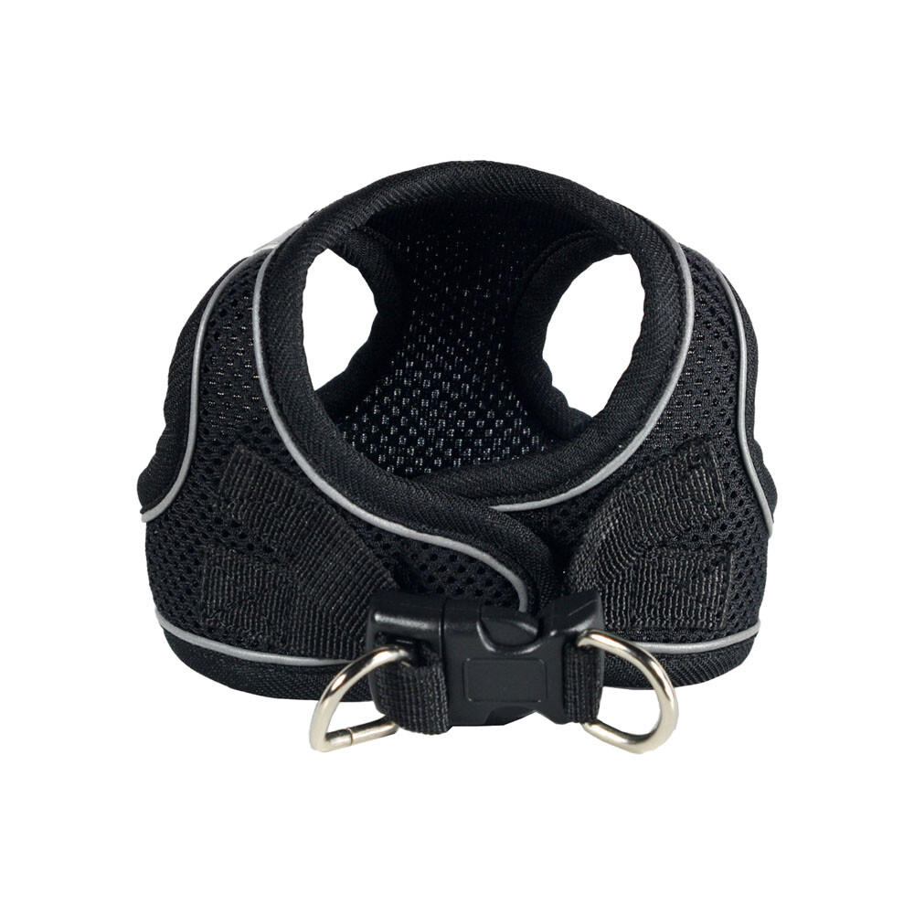 EZ Step-In Harness Vest - Black, No Choke Design - Pulls on Chest, Not Neck. Step-in Design for Easy ON, Easy Off - Not Over Head. High Quality Quick Release Buckle. Reinforced D-Ring. Reflective Safety Striping. High Quality Breathable Mesh. Safe and Secure.
