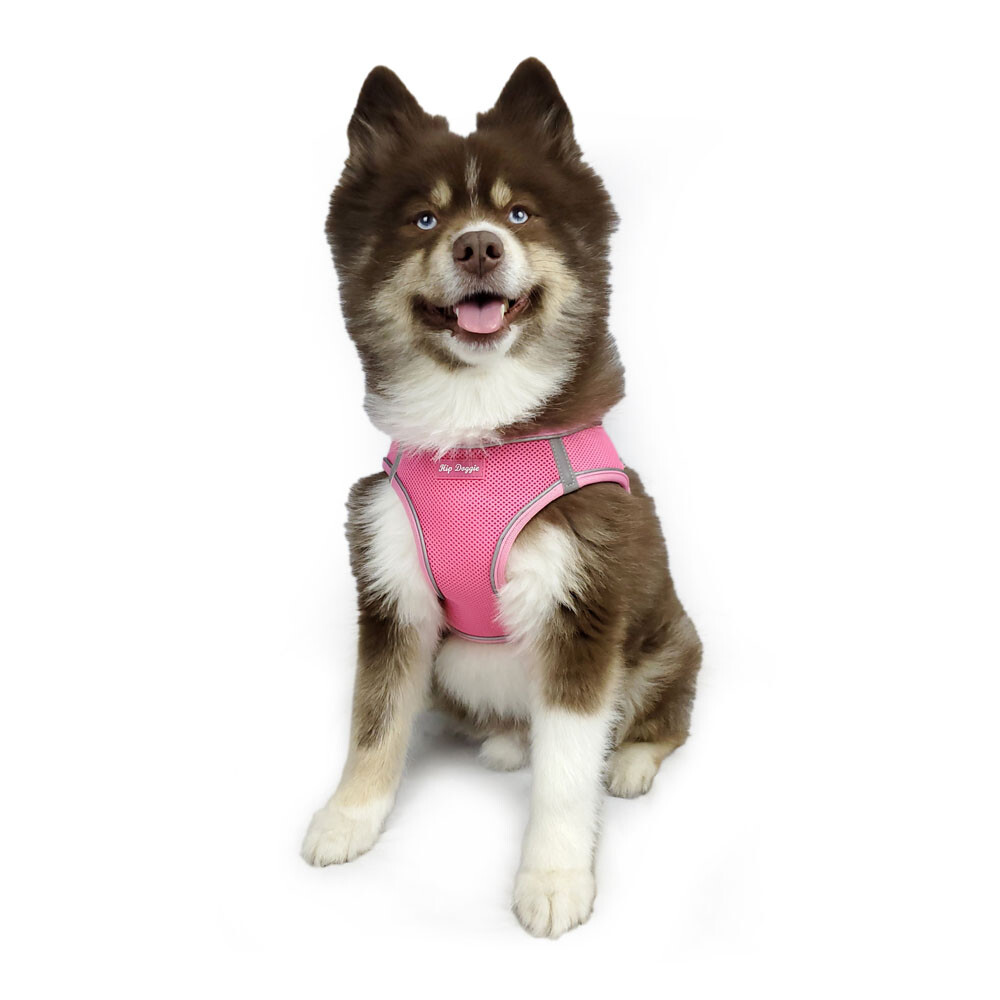 EZ Step-In Mesh Harness Vest - Pink, No Choke Design - Pulls on Chest, Not Neck. Step-in Design for Easy ON, Easy Off - Not Over Head. High Quality Quick Release Buckle. Reinforced D-Ring. Reflective Safety Striping. High Quality Breathable Mesh. Safe and Secure.