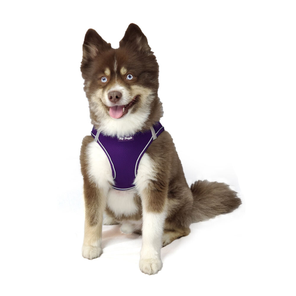 EZ Step-In Mesh Harness Vest - Purple, No Choke Design - Pulls on Chest, Not Neck. Step-in Design for Easy ON, Easy Off - Not Over Head. High Quality Quick Release Buckle. Reinforced D-Ring. Reflective Safety Striping. High Quality Breathable Mesh. Safe and Secure.