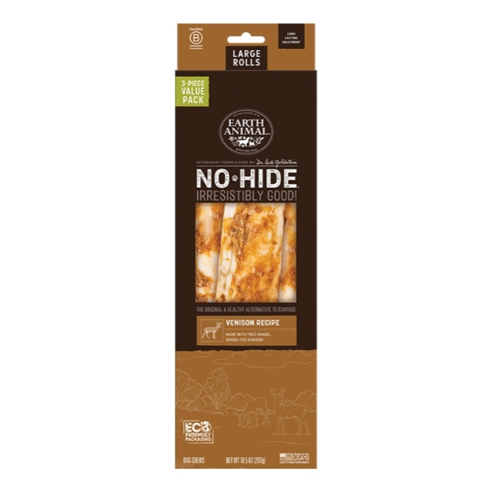 EARTH ANIMAL DOG NO-HIDE VENISON ROLLS LARGE VALUE 3 PACK